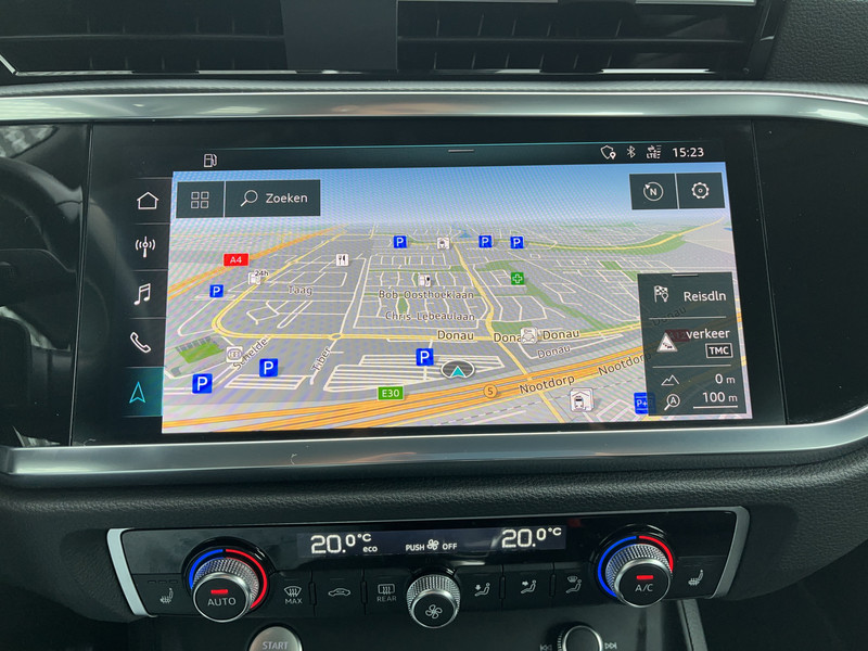 Duik in de digitale wereld van mobiliteit waar alles wat je nodig hebt voor een comfortabele en veilige rit, wordt geprojecteerd op het digitale dashboard. Een smartphone met internetverbinding legt eenvoudig overal contact met de auto. Je kan kunt functies activeren en de conditie van de auto monitoren. Voor rijders met veeleisende oren is het audiosysteem niet alleen geïntegreerd met het navigatiesysteem met harde schijf, maar ook voorzien van bluetooth en DAB+. Electronic climate control regelt volautomatisch de temperatuur. Jij kiest de gewenste temperatuur en het systeem doet de rest. Liever gepiep dan gekraak? Dan zul je blij zijn met de aanwezige parkeersensoren! De Audi is standaard voorzien van: 3-spaaks multifunctioneel lederen stuur met schakelpeddels, regensensor, cruise control, keyless entry, automatisch dimmende binnenspiegel en centrale deurvergrendeling met afstandsbediening.