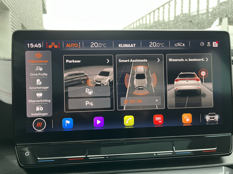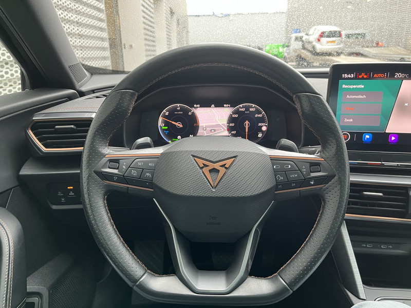 De slimme lay-out van het digitale dashboard zorgt voor een uitstekend overzicht onderweg. Als je de adaptive cruise control inschakelt, regelt de auto zelf de snelheid en de afstand tot de auto voor je. In de file rijden vreet concentratie. Daarom komt de file assistent te hulp om veilig afstand te houden en automatisch te stoppen als je voorligger stilstaat. Net als een smartphone of een slimme speaker kun je deze auto bedienen met stemcommando's. Selecteer jouw reisbestemming en het full map navigatiesysteem brengt je snel waar je moet zijn. Je bent in deze CUPRA ook voorzien van achteropkomend verkeer waarschuwing, automatische airconditioning, schakelpaddles aan het stuur, draadloos opladen, DAB ontvangst en parkeersensoren achter.
