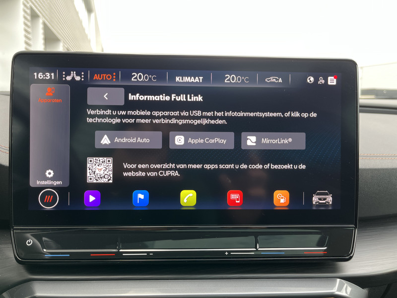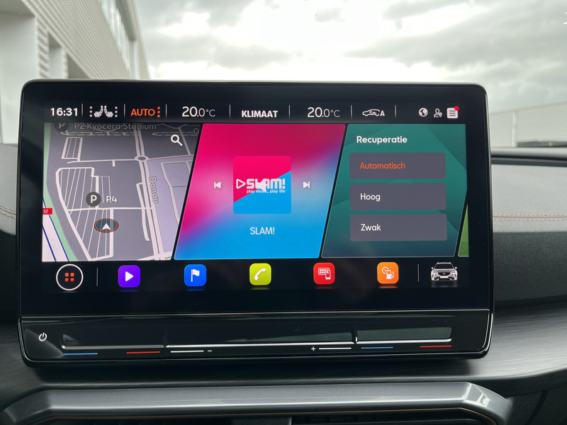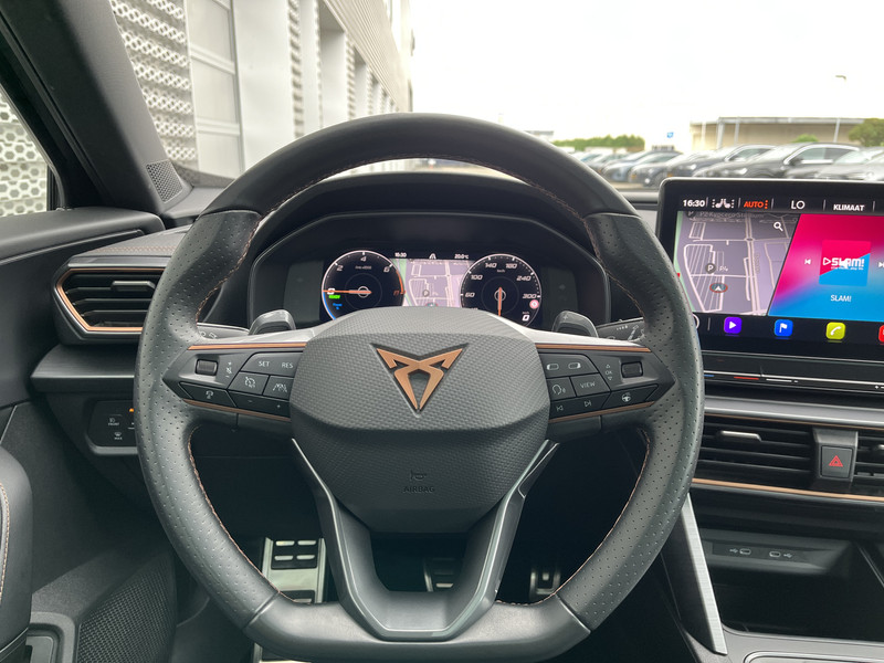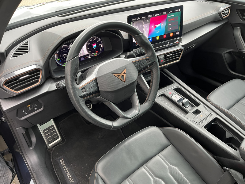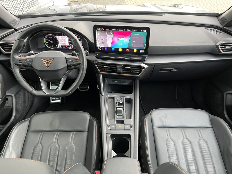 Deze CUPRA Formentor staat voor je klaar. Een geweldige, nog jonge occasion die goed is voor gemakkelijk nog een tonnetje of twee op de teller. Deze CUPRA Formentor is voorzien van een hybride motor en gebruikt dus zowel brandstof als elektriciteit. Dat betekent zuinige kilometers en toch maximale prestaties. De lederen bekleding geeft het interieur een hoogwaardige uitstraling. Voorin is het 's winters genieten met de verwarmbare voorstoelen voor zowel bestuurder als bijrijder. Scherpe bochten, pittige acceleraties? In de sportstoelen blijf je altijd in positie. Comfort, licht en het complete gevoel van ruimte wordt verzorgd door het elektrisch bediende panoramadak. Tot de uitrusting behoren ook 19 inch lichtmetalen velgen, Full LED koplampen, adaptief dempingsysteem, donker getint glas achter, in delen neerklapbare achterbank en LED-achterlichten.
