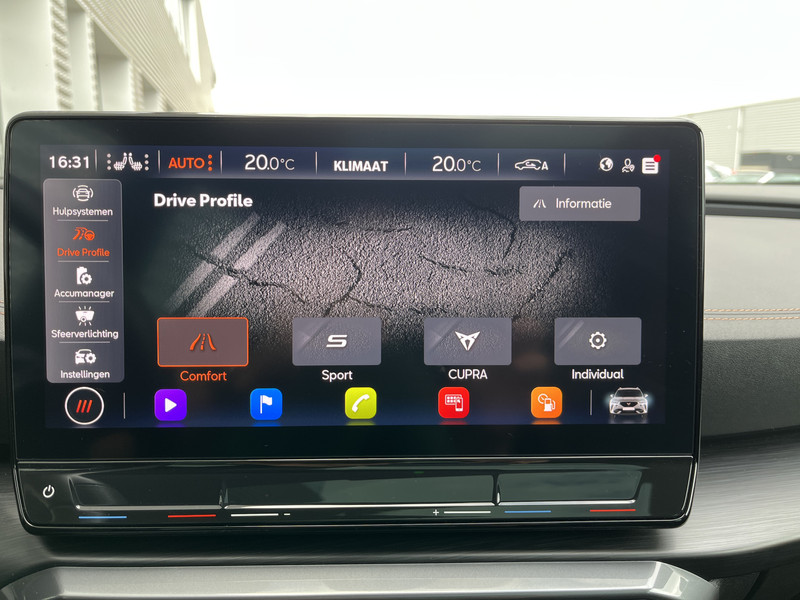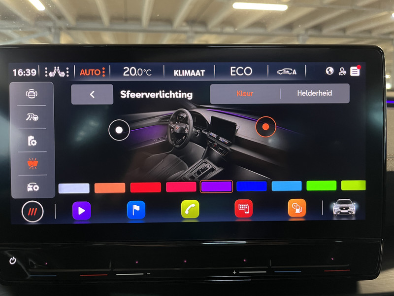 De geavanceerde technologie in deze CUPRA is in staat om onderweg het verkeer om je heen te monitoren en er op te reageren. Zo heb je als het ware een automatische co-piloot aan boord. Verkeersbord-detectie herkent verkeersborden en toont deze op het instrumentarium van de auto. Indien je onbedoeld de rijstrook lijkt te verlaten, reageert het Lane-keeping systeem meteen en corrigeert. Forward collision warning helpt je om kop-staart aanrijdingen te voorkomen. Bovenop deze veiligheidsfeatures heeft deze CUPRA bovendien dodehoekdetectie, hill hold functie, vermoeidheidsherkenning, autonoom remsysteem en bandenspanningcontrolesysteem.