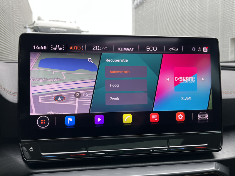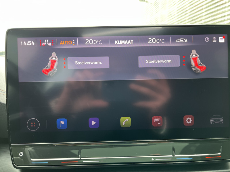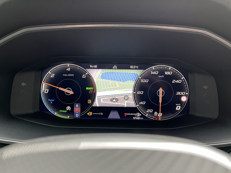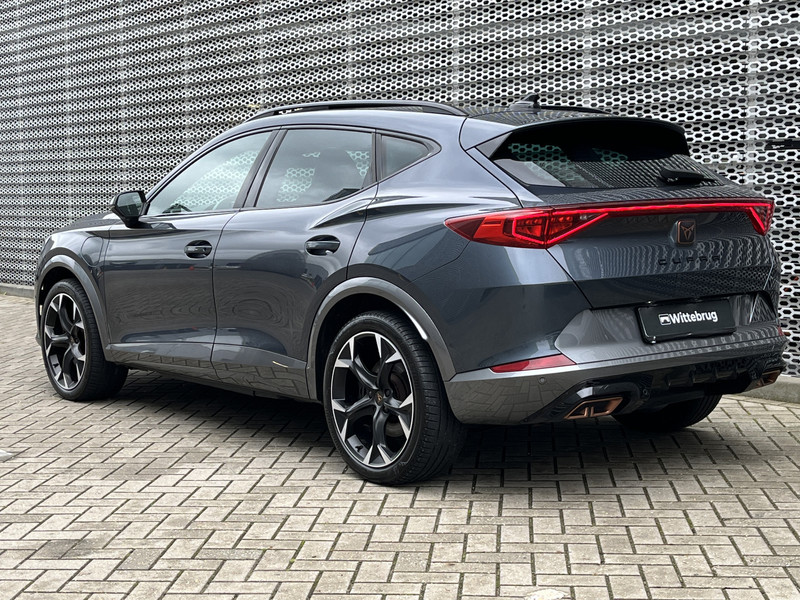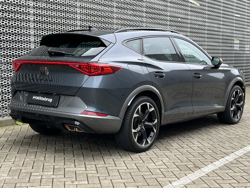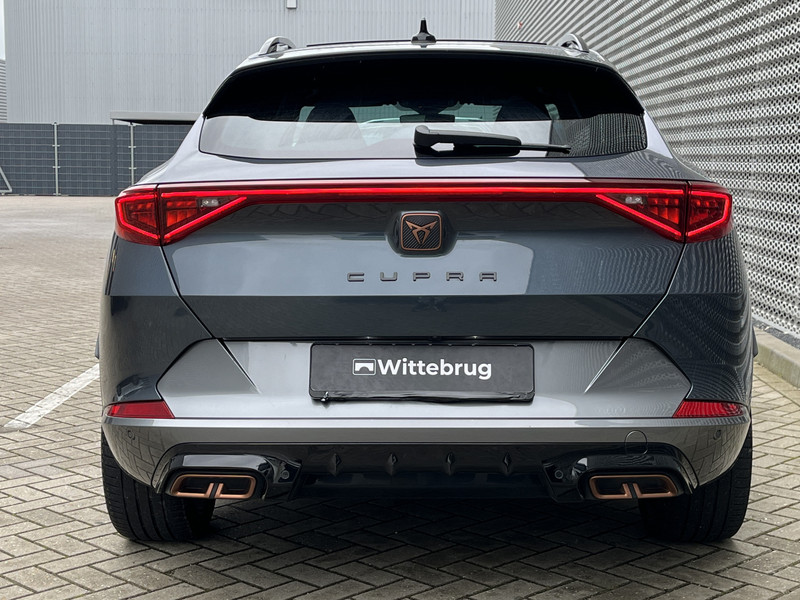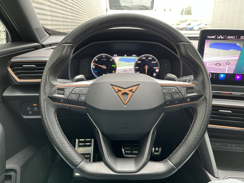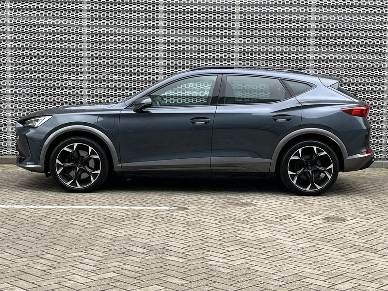 Voor deze CUPRA Formentor moet je snel zijn, want die gaat aandacht krijgen. Net binnen, maar daar blijft-ie niet lang! De hybride motor combineert een elektromotor met een verbrandingsmotor. Je kan dus kiezen. Het lederen interieur springt meteen in het oog; maar wat dacht je van het ultragemakkelijke elektrisch bediende glazen panorama dak en de elektrisch bedienbare achterklep? Lekker hoor, die verwarmbare voorstoelen. Helemaal op koude dagen. Zijwaartse g-krachten worden solide opgevangen door de sportstoelen. Tot de uitrusting behoren ook 19 inch lichtmetalen velgen, Full LED koplampen, adaptief dempingsysteem, donker getint glas achter, in delen neerklapbare achterbank en LED-achterlichten.