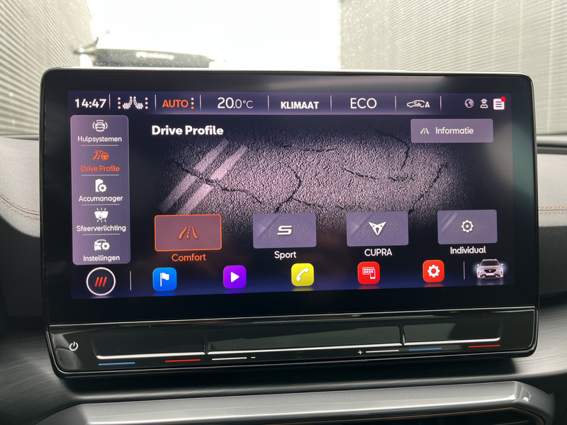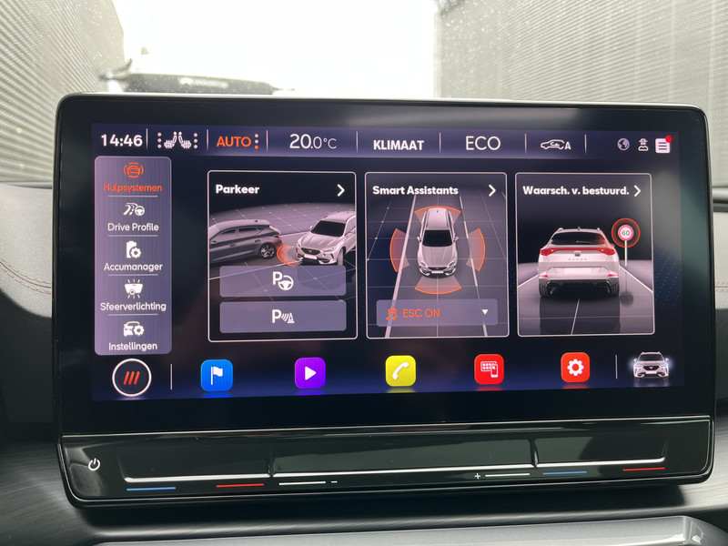 Het zal je verbazen hoe deze auto in staat is om voor jou de omgeving en het verkeer om je heen in de gaten te houden. Bij de veiligheidssystemen van deze CUPRA hoort ook de verkeersbord-detectie. Die leest tijdens het rijden als het ware met je mee en attendeert je op de significante verkeersborden langs en boven de weg. Een camera houdt de juiste koers binnen de rijstrook in de gaten en het Lane-keeping systeem corrigeert bij afwijkingen. De forward collision warning reduceert het gevaar van een botsing met een voorligger significant. Verder is deze auto uitgerust met dodehoekdetectie, hill hold functie, vermoeidheidsherkenning, autonoom remsysteem en bandenspanningcontrolesysteem.