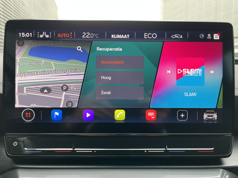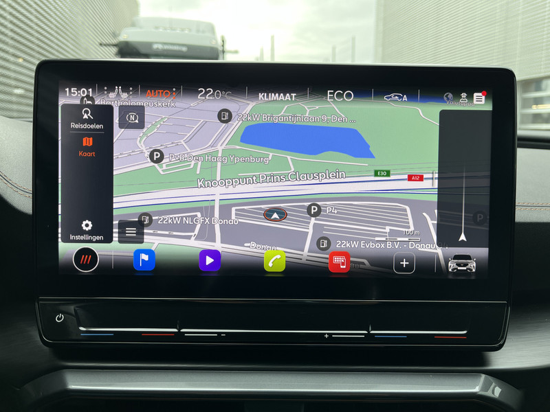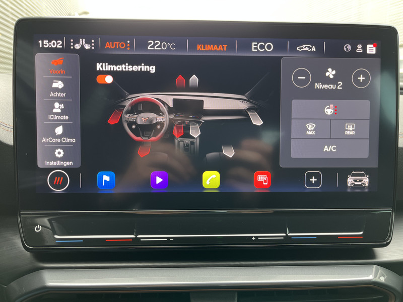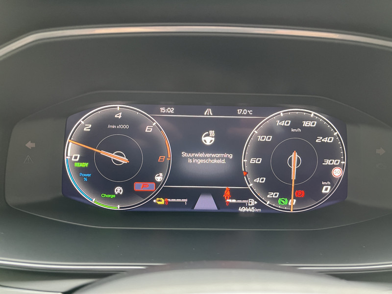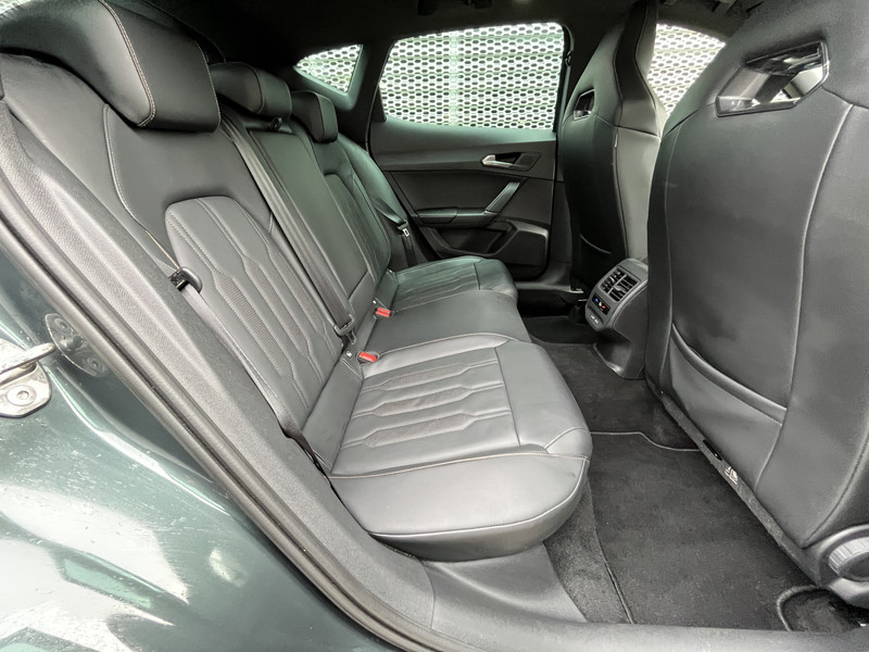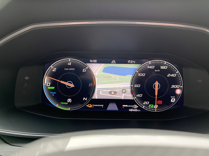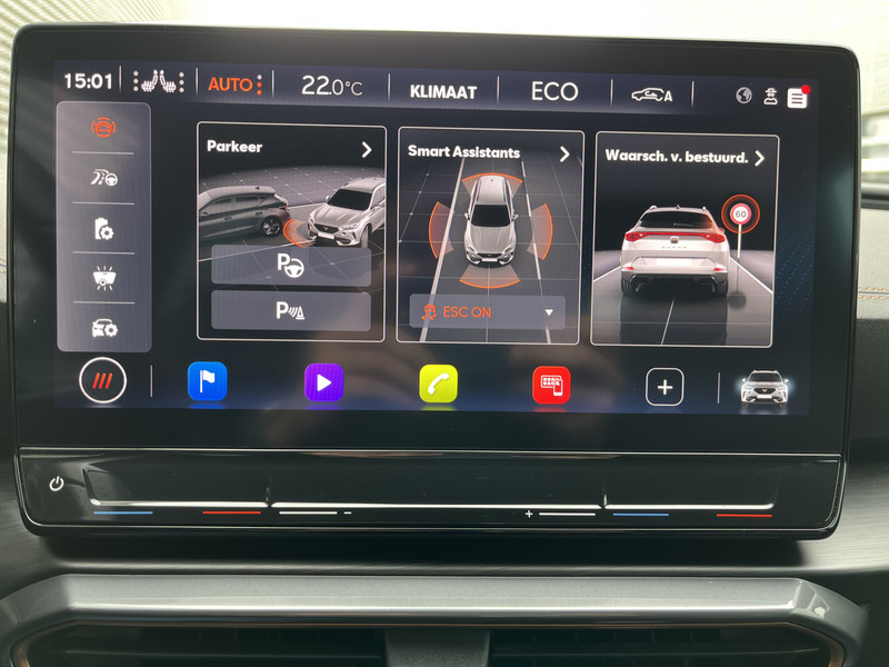 Je leest alle belangrijke functies helder af dankzij het digitale dashboard. De achteruitrijcamera brengt precies in zicht wat zich achter je bevindt en toont een glashelder beeld op hoge resolutie. Een geluidssignaal waarschuwt hoeveel ruimte je nog hebt. Adaptive cruise control is een comfortabele en veilige optie. Het systeem reguleert de snelheid en houdt automatisch afstand tot jouw voorligger. De aanwezige file assistent meet de afstand tot je voorligger en zorgt voor een veilige afstand. Staat het voor je opeens stil? Dan zorgt het systeem dat de auto ook stopt. De bediening van het audio-installatiesysteem en het full map navigatiesysteem gebeurt met knoppen op het stuur en als je wilt zelfs met jouw stem. De audio is overigens voorzien van DAB-radio voor een altijd heldere ontvangst. De uitrusting van deze CUPRA is met achteropkomend verkeer waarschuwing, automatische airconditioning, schakelpaddles aan het stuur, draadloos opladen, regensensor en keyless entry behoorlijk compleet.