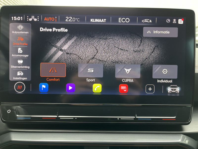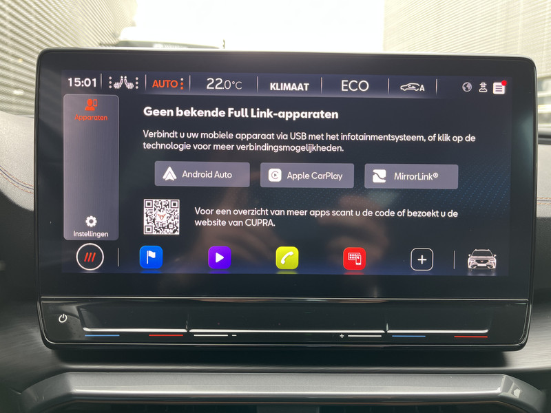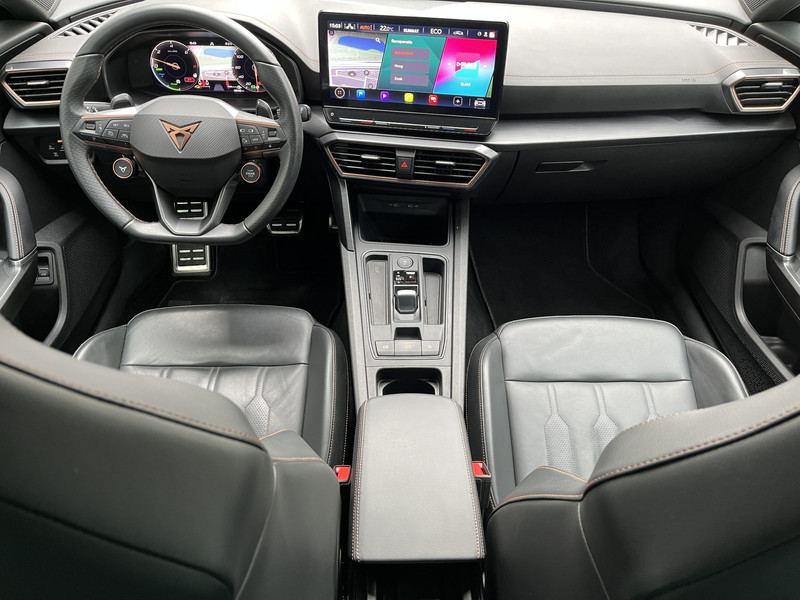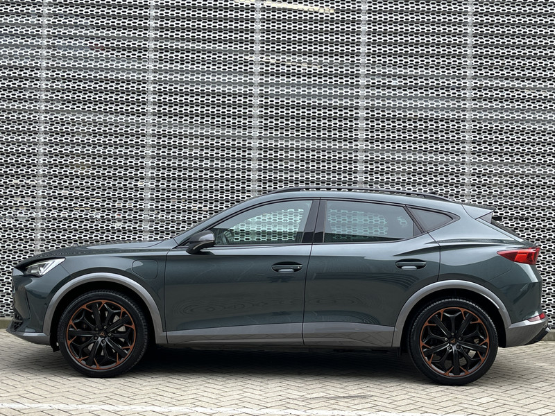 Bij de bouw van de CUPRA Formentor wordt niets aan het toeval overgelaten. Vandaar dat hier een auto staat die in optimale conditie verkeert. De toekomst is hybride: de combi van elektromotor en verbrandingsmotor maakt deze auto extra aantrekkelijk en voordelig in gebruik. Basisuitvoering? Niks daarvan! Deze komt met lederen interieur, een elektrisch bediende glazen panorama dak en een elektrisch bedienbare achterklep. Deze CUPRA Formentor heeft verwarmbare voorstoelen, voor zowel bestuurder als bijrijder. De sportstoelen zorgen ervoor dat je goed en comfortabel zit, ook als het gas erop gaat. De uitmonstering van deze auto wordt gecompleteerd door onder meer 19 inch lichtmetalen velgen, Full LED koplampen, adaptief dempingsysteem, donker getint glas achter, in delen neerklapbare achterbank en LED-achterlichten.