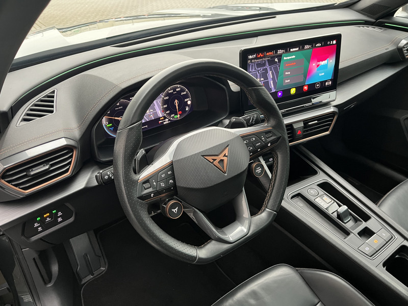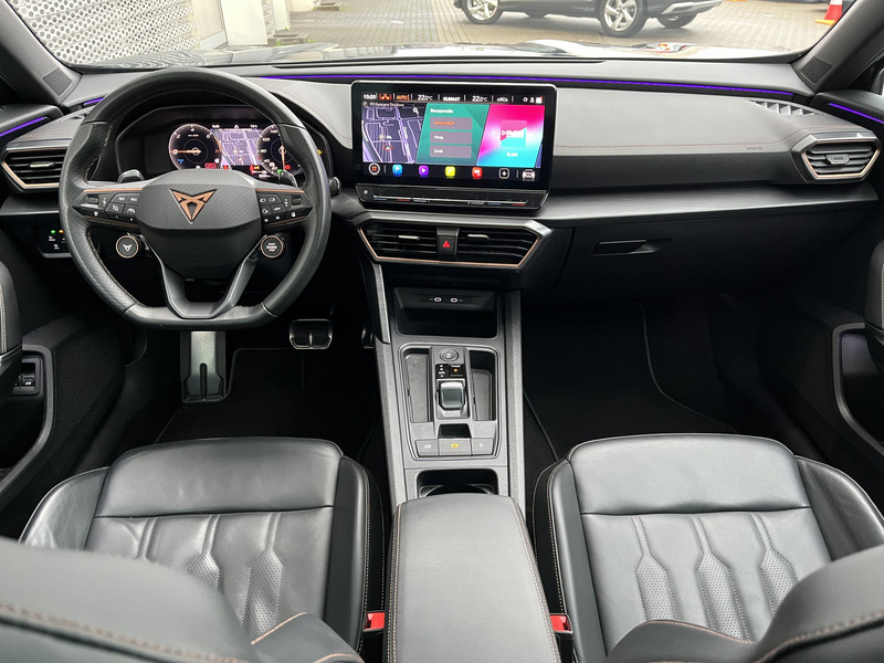 Met deze CUPRA Formentor kun jij weer jaren vooruit, de kilometerteller staat op 58022. Het beste van twee werelden komt samen in de hybride motor. Daarmee wordt deze CUPRA Formentor aangedreven door zowel brandstof als door de elektrische accu, die al rijdend of remmend wordt bijgeladen. Deze CUPRA Formentor komt in de luxe uitvoering, inclusief lederen interieur. De verwarmbare voorstoelen zijn een heerlijke extra optie, waarmee je jezelf en je bijrijder een groot plezier doet. De sportstoelen zorgen voor een strak uiterlijk én een uitstekende zitsteun. Van binnen lijkt het allemaal uitermate ruim dankzij de vrije inval van daglicht via het elektrisch bediende glazen panoramadak. Met een druk op de knop gaat de elektrische achterklep open. Tot de uitrusting behoren ook 19 inch lichtmetalen velgen, Full LED koplampen, adaptief dempingsysteem, donker getint glas achter, in delen neerklapbare achterbank en LED-achterlichten.