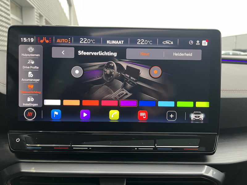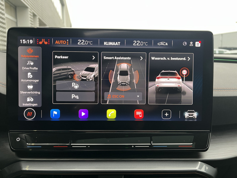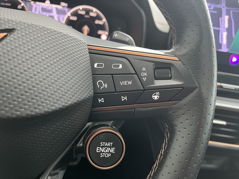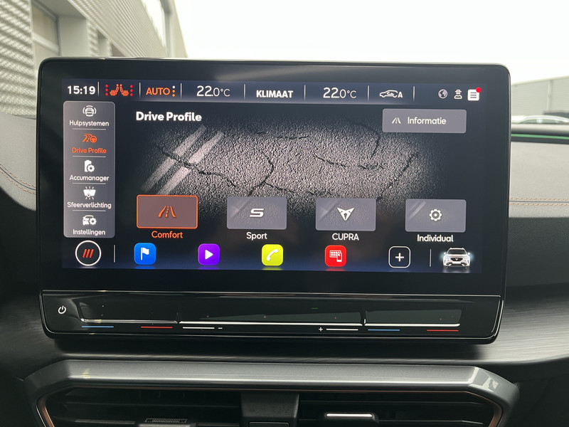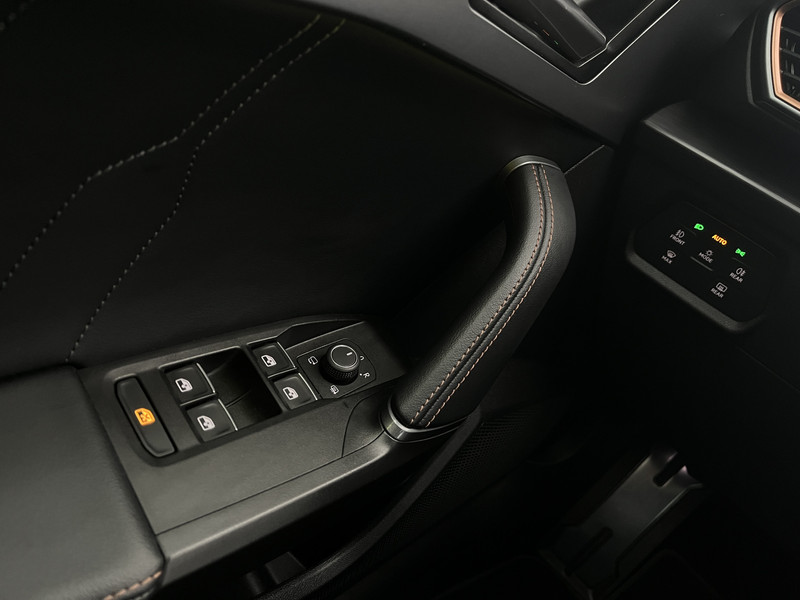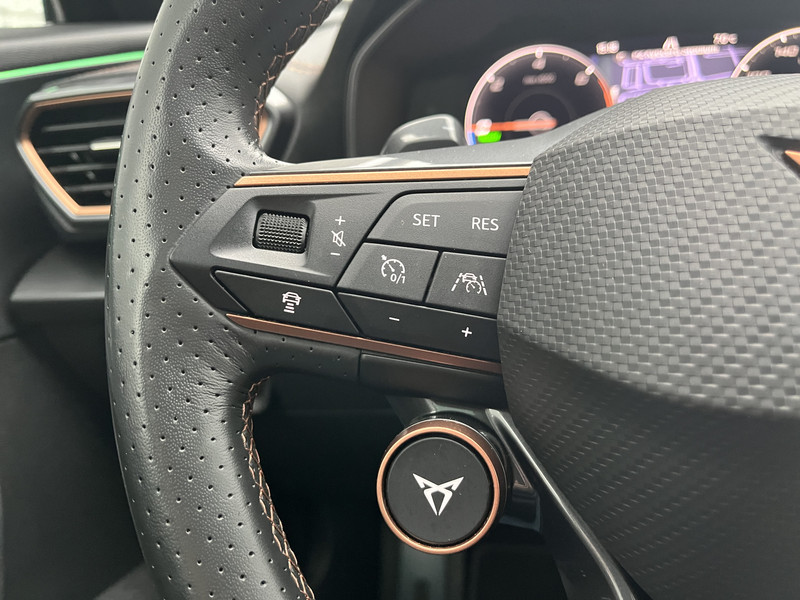 Aan boord van deze CUPRA houden verschillende geavanceerde systemen voor jou de weg in de gaten. Ze waarschuwen je voor noodsituaties en kunnen in een aantal gevallen ook zelf ingrijpen. De actuele snelheidslimiet, een inhaalverbod en andere verkeersborden; de verkeersborddetectie ondersteunt je tijdens elke rit. Onbedoeld buiten de rijstrook raken wordt voorkomen door het Lane-keeping systeem. Het risico van een kop-staartbotsing wordt aanzienlijk verminderd door de forward collision warning. Ook helpen het dodehoekdetectie, hill hold functie, vermoeidheidsherkenning, autonoom remsysteem en bandenspanningcontrolesysteem, jouw rit tot een veilige rit te maken.
