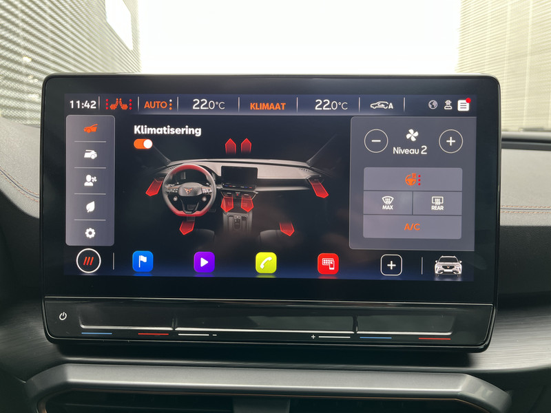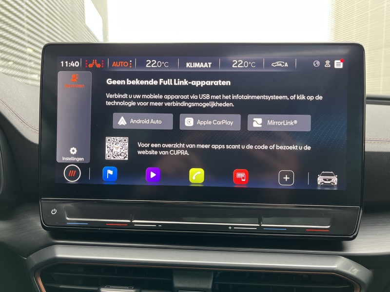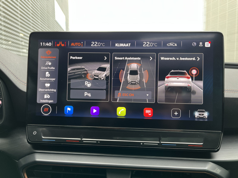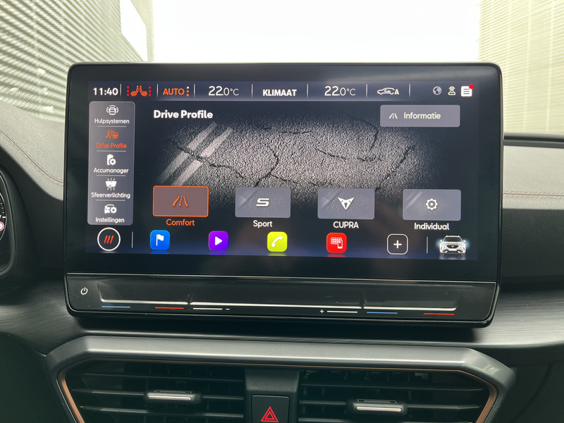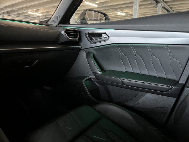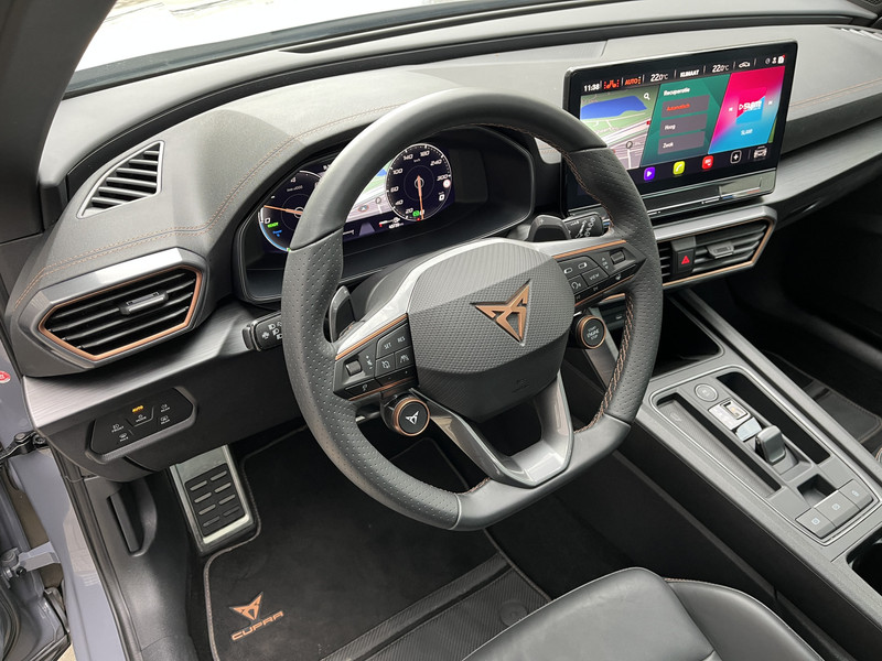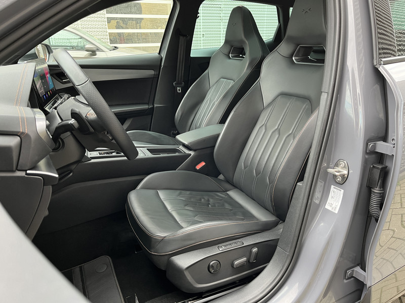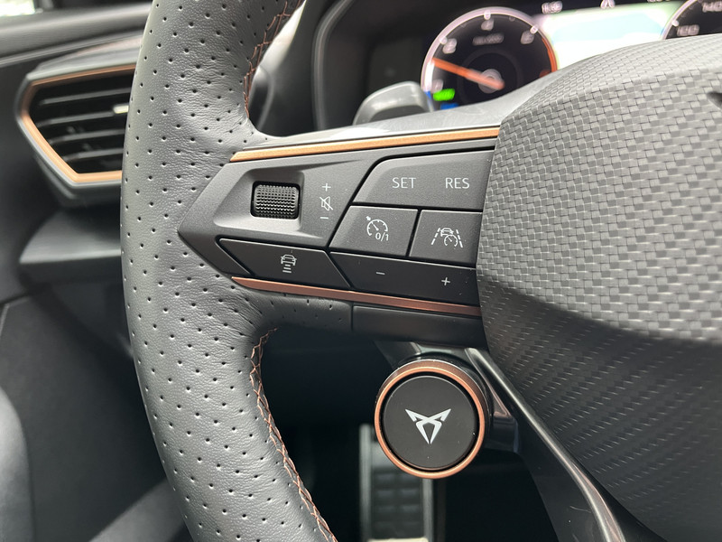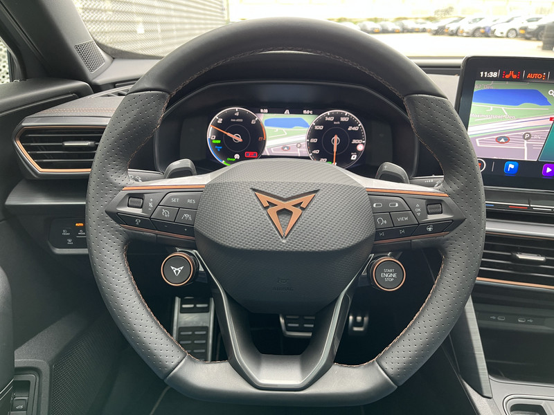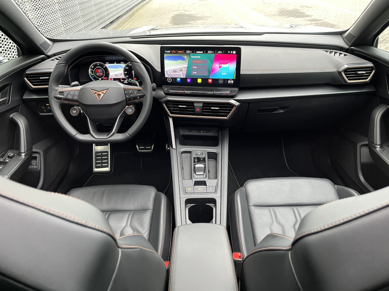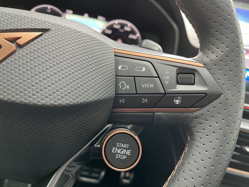 Alle functies die je onderweg nodig hebt, worden permanent geregistreerd en zijn afleesbaar op het digitale dashboard. Met de 360 graden camera op deze auto wordt parkeren in smalle parkeerplekken een makkie dankzij het optimale zicht dat het apparaat levert. Adaptive cruise control houdt de ingestelde snelheid vast en houdt automatisch afstand tot jouw voorligger. Na een lange werkdag in de file: daar zit niemand op te wachten. Gelukkig helpt de file assistent een handje. Het radarsysteem meet de ruimte tot de voorligger en bewaakt de juiste afstand. Stilstaan? Dan remt en stopt de auto vanzelf. Een veiligheidsverhogende optie is de ingebouwde spraakbediening. Terwijl jij jouw ogen op de weg houdt, bedien je de auto met je stem. De CUPRA is standaard voorzien van: connected drive services, full map navigatiesysteem, achteropkomend verkeer waarschuwing, automatische airconditioning, schakelpaddles aan het stuur en draadloos opladen.