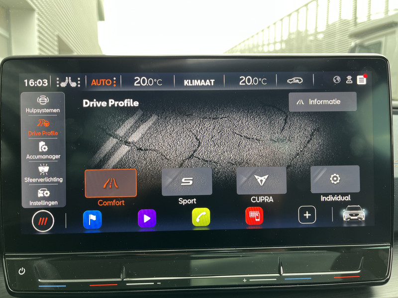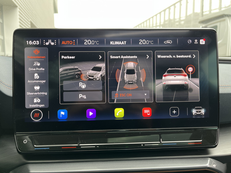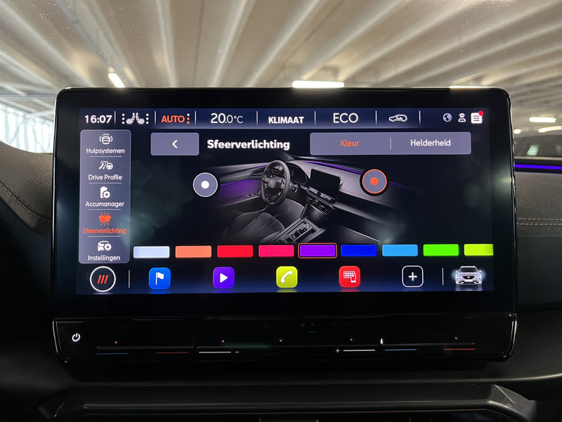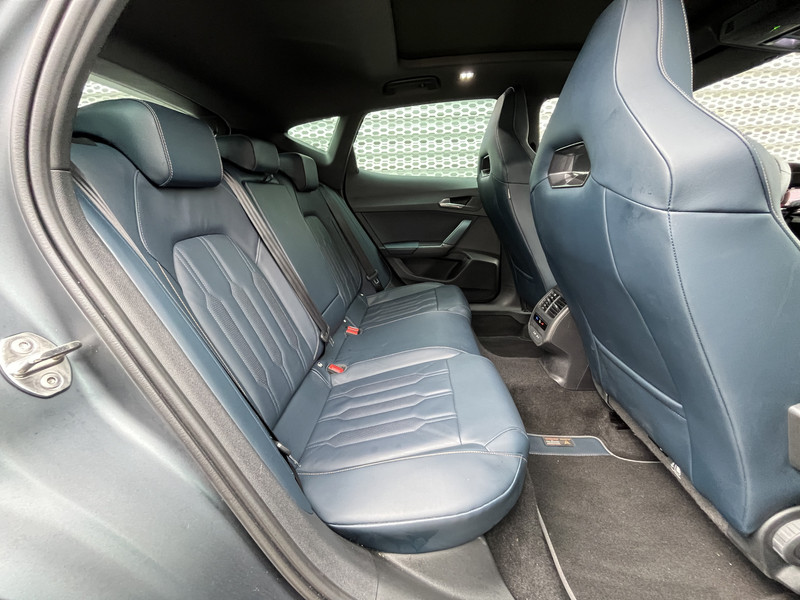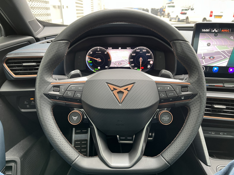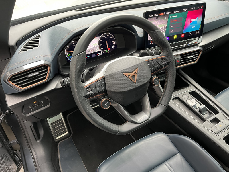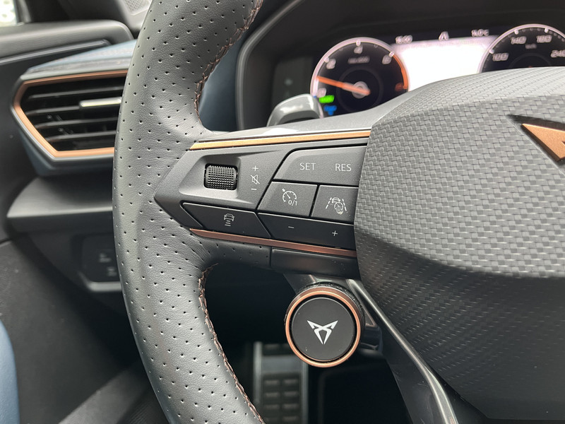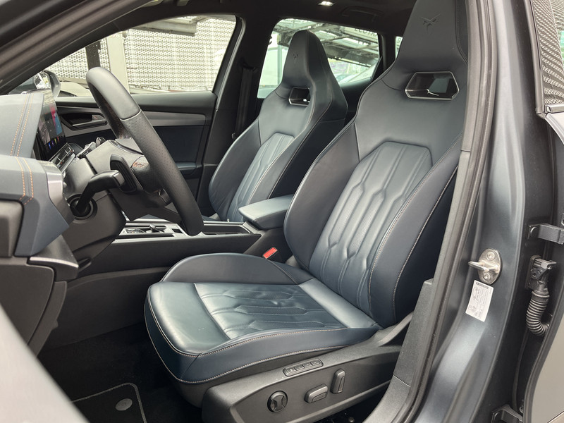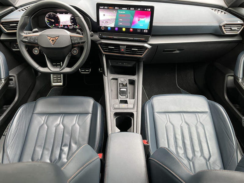 Je rijdt gemakkelijk, comfortabel en zonder zorgen met deze CUPRA Formentor. De krachtige benzinemotor van deze auto is gekoppeld aan een automatische transmissie. De auto is uitgerust met stijlvolle, lederen bekleding. In de verwarmbare voorstoelen zitten is elke keer een welkom gevoel. Wat een licht geeft dat glazen elektrisch bedienbare panoramadak. De elektrische achterklep opent met een druk op de knop, zodat jij gemakkelijk toegang heeft tot de bagageruimte. De koplampen geven het beste zicht ooit, met de matrix LED-verlichting. Bij de zeer complete uitrusting van deze auto behoren ook 19 inch lichtmetalen velgen, adaptief dempingsysteem, donker getint glas achter, in delen neerklapbare achterbank, LED-achterlichten en verstelbare lendensteunen.