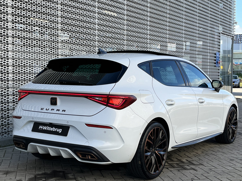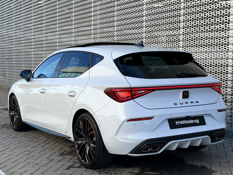 Deze hatchback is niet alleen compact, maar biedt ook heel, heel, heel veel ruimte voor bagage of lading. Uitstekende prestaties op de weg dankzij de verbrandingsmotor én elektromotor. En héél vriendelijk voor het milieu en portemonnee! Een weldaad voor jou en je bijrijder: deze CUPRA Leon heeft verwarmbare voorstoelen. De sportstoelen geven het interieur van deze Leon een super strakke en sportieve uitstraling. Het interieur glanst in daglicht door het elektrisch bedienbare panoramadak. Tot de voorzieningen van deze auto behoren 19 inch lichtmetalen velgen, LED koplampen, adaptief dempingsysteem, donker getint glas achter, in delen neerklapbare achterbank en LED-achterlichten.