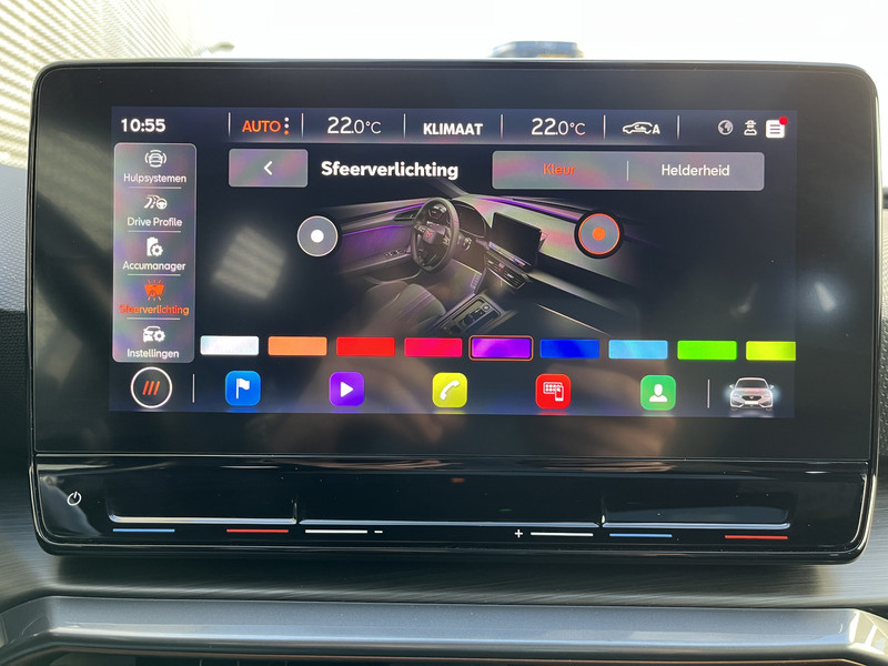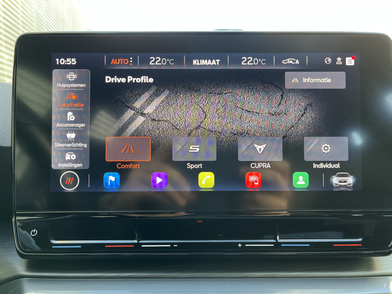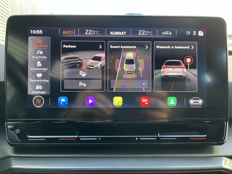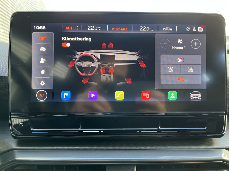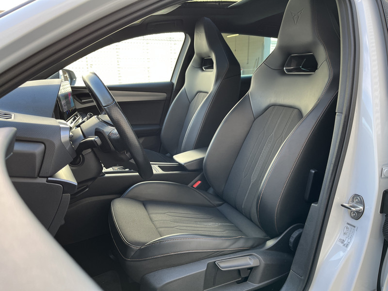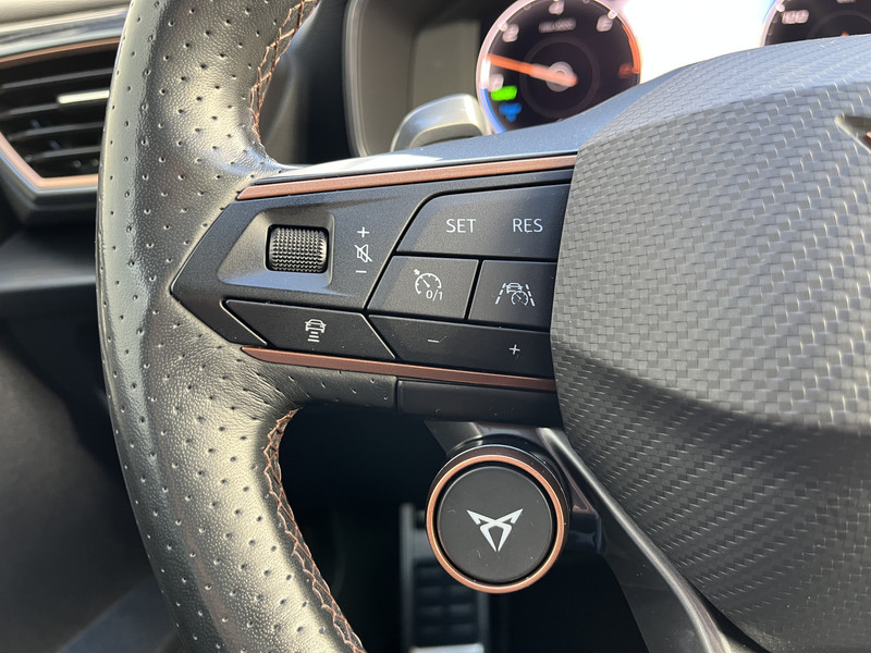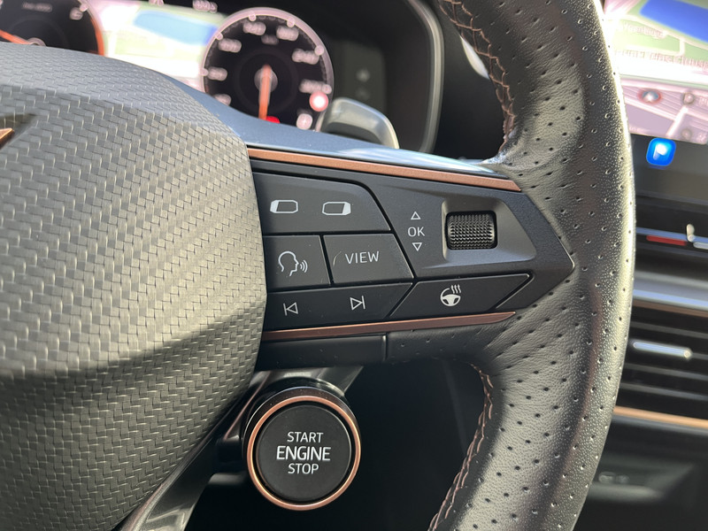 Overzicht, informatie en functionaliteit: dat biedt het digitale dashboard. Met behulp van de achteruitrijcamera kan je zo strak inparkeren als je maar wilt! Adaptive cruise control is veilig en comfortabel. De snelheidsregelaar houdt automatisch afstand tot het voertuig dat voor je rijdt. Rijden-stilstaan, rijden-stilstaan. Niks is irritanter en vermoeiender dan filerijden. Daar heeft deze CUPRA Leon een oplossing voor: de file assistent, die met radarmeting permanent het tempo aanpast op de voorligger. Zelfs als die stopt. Laat je onderweg niet afleiden, de bediening van het audiosysteem en ook het full map navigatiesysteem gaat met knoppen op het stuur en met spraak. Natuurlijk is de audio-installatie voorzien van DAB-ontvangst. Extra opties op deze auto zijn: WIFI-hotspot, electronic climate control, draadloos opladen, regensensor, sportstuurwiel en keyless entry.