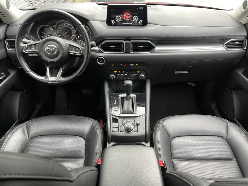 In het moderne verkeer heb jij achter het stuur van de Mazda CX-5 altijd de controle. Deze auto uit 2020 heeft 78952 kilometer op de teller staan. Deze SUV is uitgerust met een benzinemotor en een automatische transmissie. Topklasse: daar hoort leren bekleding absoluut bij. Lekker hoor, die verwarmbare voorstoelen. Helemaal op koude dagen. De achterklep opent automatisch met een druk op de knop. Handig als je met volle handen staat. Tot de voorzieningen van deze auto behoren 19 inch lichtmetalen velgen, LED koplampen, dakspoiler, donker getint glas achter, in delen neerklapbare achterbank en LED-achterlichten.