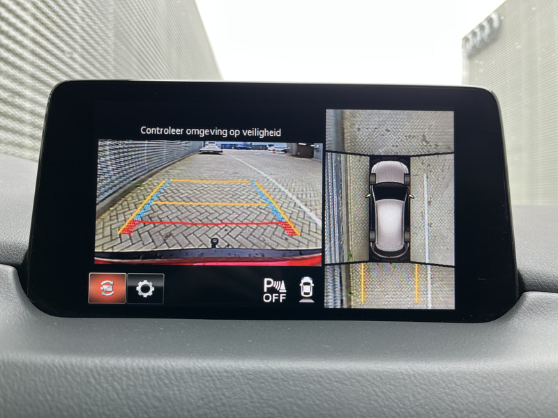De 360 graden camera wordt mogelijk gemaakt door vier camera's die tezamen werken om zo een uitgebreid zicht te bieden, wat van grote waarde is bij het navigeren door smalle straatjes en parkeerplekken. In deze auto klinkt jouw favoriete muziek nog beter dankzij het high performance audiosysteem. Deze Mazda CX-5 is voorzien van sensoren aan de achterzijde om een achteropkomend verkeer waarschuwing te geven als de afstand tussen jou en een achterligger te klein is. Natuurlijk is er ook electronic climate control aanwezig. Een plekje vinden in de binnenstad is één, soepel inparkeren is twee. Voor dat laatste heeft deze Mazda CX-5 prima parkeersensoren die je een handje helpen. Natuurlijk behoren dashboard met spraakbediening, full map navigatiesysteem, DAB ontvangst, regensensor, cruise control en keyless entry ook tot de uitrusting van deze complete auto.