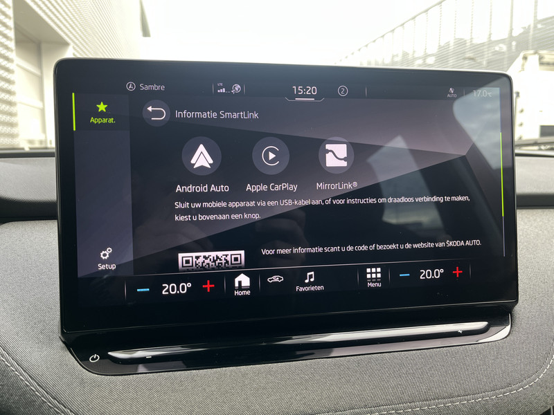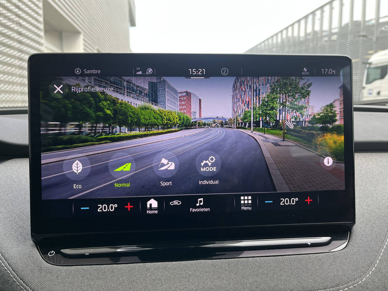 Omdat goed geïnformeerd rijden tegenwoordig om veel meer draait dan alleen snelheid en brandstofpeil, laat het digitale dashboard alle functies zien die je nodig hebt. Een onopvallend paaltje of een overstekend kind achter de auto brengt risico's met zich mee. Gelukkig laat de achteruitrijcamera feilloos zien of alles veilig is. Een veiligheidsverhogende optie is de ingebouwde spraakbediening. Terwijl jij jouw ogen op de weg houdt, bedien je de auto met je stem. Dankzij Connected Services weet je precies waar je auto geparkeerd staat. Ook andere functies, zoals bandenspanning en brandstofniveau, zijn via de app altijd onder handbereik. Zorgeloos en geconcentreerd rijden? Het full map navigatiesysteem wijst de weg! Je bent in deze ŠKODA ook voorzien van electronic climate control, schakelpaddles aan het stuur, draadloos opladen, DAB ontvangst, regensensor en cruise control.