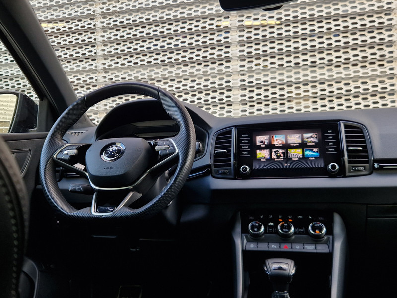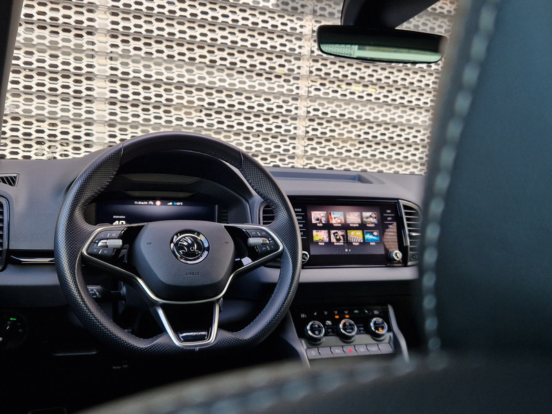 Je ziet het al aan de buitenkant en je voelt het zodra je de krachtige motor start, deze sportieve ŠKODA Karoq is gemaakt om prestaties te leveren. We hebben het hier over een auto uit 2024, hij heeft 25000 kilometer gelopen. Met zijn benzinemotor en automatische transmissie is dit een prima auto voor nog vele kilometers. Dankzij de elektrische stoelbediening is het gemakkelijk om de optimale zitpositie te vinden. Het elektrisch bediende panoramadak zorgt voor maximale lichtinval en frisse lucht in het interieur. Met een druk op de knop gaat de elektrische achterklep open. In de winter wil iedereen mee. Zou dat komen door de verwarmde achterbank? De geavanceerde matrix LED-verlichting in de koplampen levert maximaal helder zicht en past zich subtiel aan zodra er een tegenligger komt. Zonder lichtkwaliteitsverlies! Tot de uitrusting behoren ook 18 inch lichtmetalen velgen, adaptief dempingsysteem, donker getint glas achter, in delen neerklapbare achterbank, LED-achterlichten en verstelbare lendensteunen.