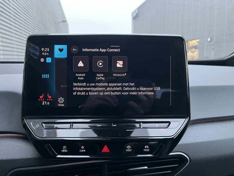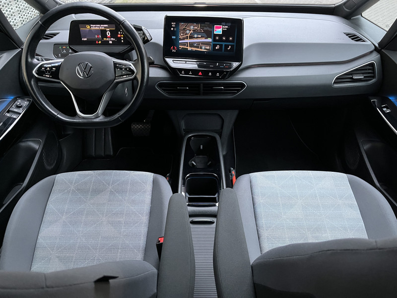 Met adaptive cruise control houdt deze auto automatisch afstand tot jouw voorligger. In één oogopslag weet je de complete systeemstatus van deze auto. Dankzij Connected Services. In deze auto beschik jij natuurlijk over een navigatiesysteem. Het audiosysteem met DAB-radio biedt glasheldere geluidskwaliteit. Je bedient dit veilig, via het stuurwiel of met spraakbediening. Deze Volkswagen ID.3 is een complete auto anno nu, en dat merk je. Bijvoorbeeld door de aanwezige draadloze oplaadmogelijkheid voor telefoons. De achteropkomend verkeer waarschuwing is een mooie veiligheidsoptie, die middels sensoren in de gaten houdt wat er onderweg achter je gebeurt. Met automatische airconditioning, parkeersensoren voor en achter, regensensor, automatisch dimmende binnenspiegel, lederen stuur en centrale deurvergrendeling met afstandsbediening is deze Volkswagen helemaal compleet.