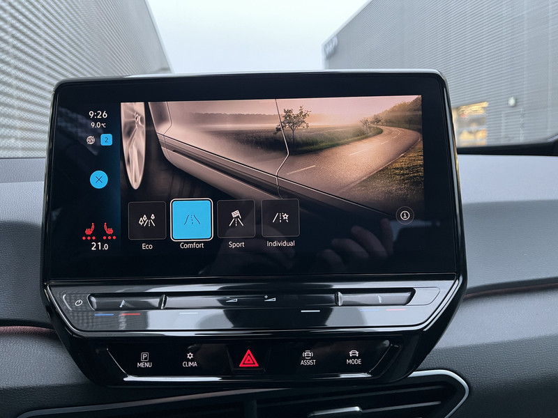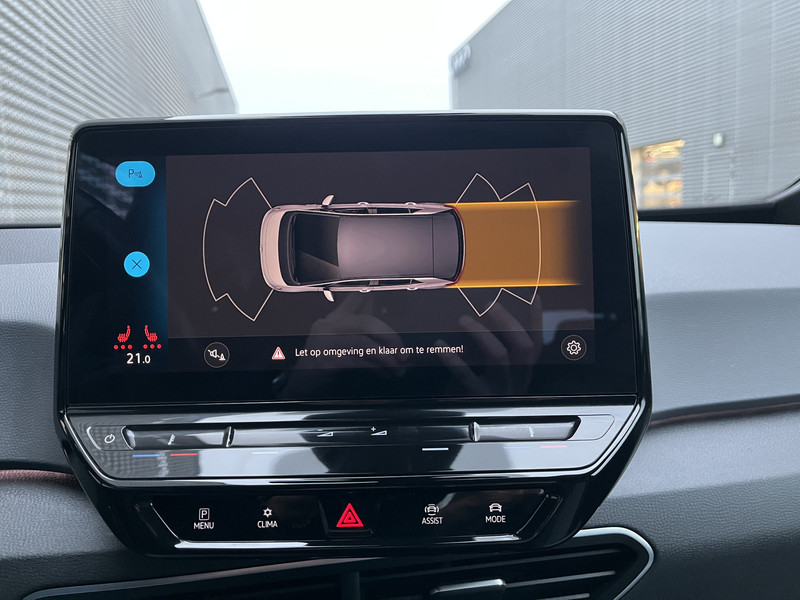 Zoals je mag verwachten van deze Volkswagen ID.3 is hij uitgerust met een reeks aan actieve veiligheidssystemen. Verkeersborddetectie herkent tijdelijke en permanente verkeersborden langs en boven de weg. Onbedoeld buiten de rijstrook raken wordt voorkomen door het Lane-keeping systeem. Onbedoeld bumperkleven is er niet bij, dankzij de forward collision warning. Die waarschuwt direct als een botsrisico met je voorligger dreigt. Je bent mede dankzij hill hold functie, vermoeidheidsherkenning, autonoom remsysteem en bandenspanningcontrolesysteem steeds veilig onderweg.