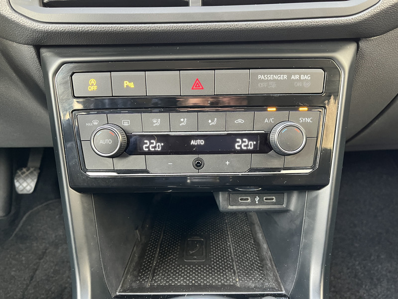 Zoals je mag verwachten van deze Volkswagen T-Cross is hij uitgerust met een reeks aan actieve veiligheidssystemen. Forward collision warning is een automatisch waarschuwingssysteem dat direct in werking treedt bij gevaar voor een kop-staartbotsing. De auto is ook uitgerust met dodehoekdetectie, hill hold functie, autonoom remsysteem en bandenspanningcontrolesysteem.
