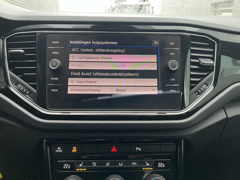 De nieuwste veiligheidssystemen komen in deze Volkswagen T-Roc samen. Onderweg fungeert de verkeersbord-detectie als het ware als jouw bijrijder en attendeert je op de verkeersborden langs de weg. Indien je onbedoeld de rijstrook lijkt te verlaten, reageert het Lane-keeping systeem meteen en corrigeert. Forward collision warning helpt je om kop-staart aanrijdingen te voorkomen. Ook helpen het hill hold functie, vermoeidheidsherkenning, autonoom remsysteem en bandenspanningcontrolesysteem, jouw rit tot een veilige rit te maken.