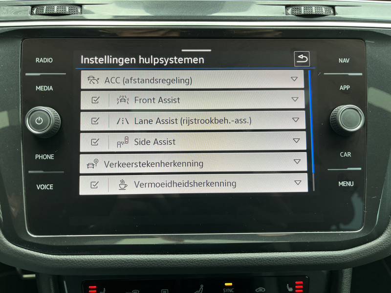 In de Volkswagen Tiguan heeft jouw veiligheid en die van jouw omgeving prioriteit. Bij de veiligheidssystemen van deze auto hoort ook de verkeersbord-detectie. Die leest tijdens het rijden als het ware met je mee en attendeert je op de significante verkeersborden langs en boven de weg. Onbedoeld buiten de rijstrook raken wordt voorkomen door het Lane-keeping systeem. Ook als jouw aandacht even verslapt, blijft de forward collision warning bij de wekker. Dreigt er een botsing met een voor- of tegenligger, dan waarschuwt het systeem direct. De auto is ook uitgerust met dodehoekdetectie, hill hold functie, brake assist, vermoeidheidsherkenning en bandenspanningcontrolesysteem.