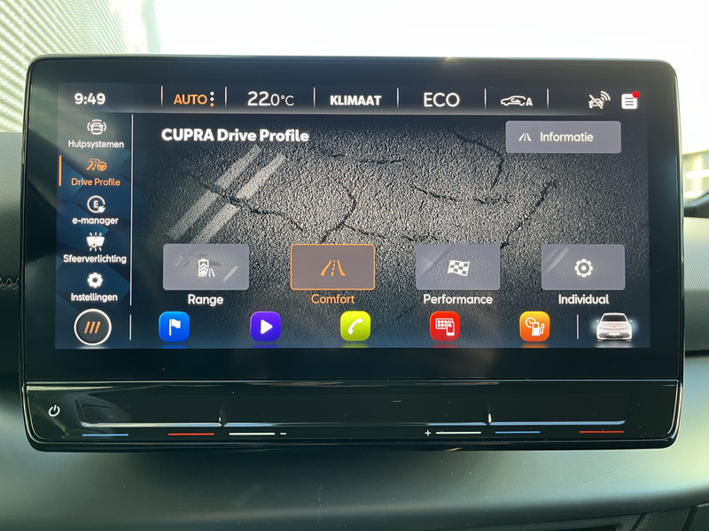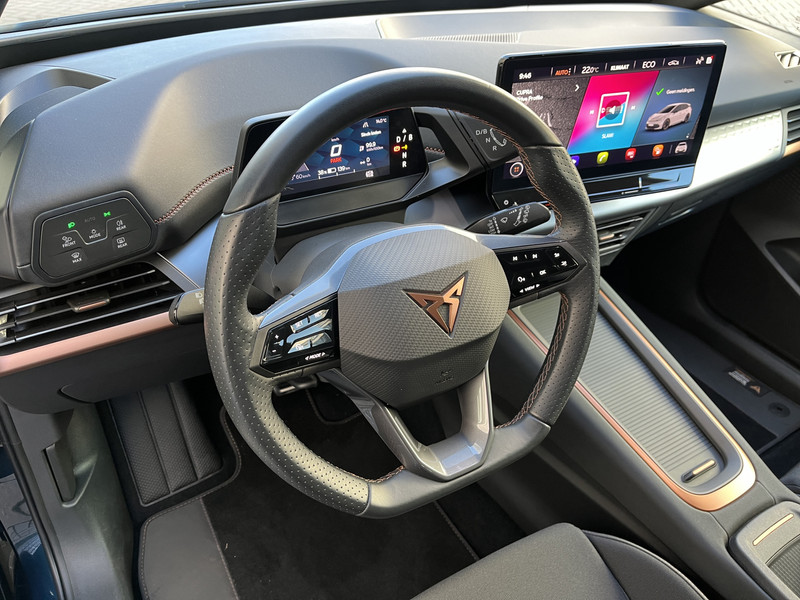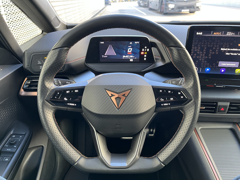 Met de nieuwste technologieën aan boord is deze CUPRA in staat om zelf te reageren op potentieel gevaarlijke situaties op de weg. Voorzien van het Lane-keeping systeem. Ofwel: blijf automatisch in je baan. Op een kop-staartbotsing zit niemand te wachten. Daarom is de forward collision warning onderweg constant alert en berekent via een sensor de veilige afstand tot voorliggers. Op lange ritten voorkomt de vermoeidheidsassistent dat jouw concentratie afneemt. In deze CUPRA vinden we verder een autonoom remsysteem en bandenspanningcontrolesysteem.