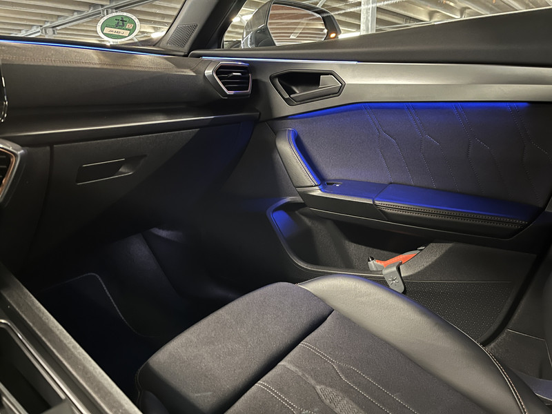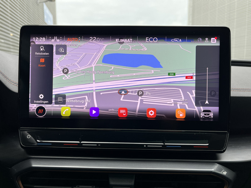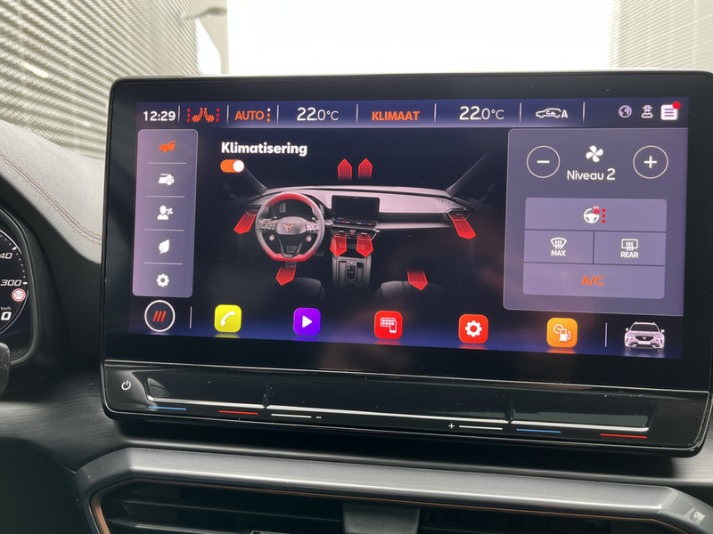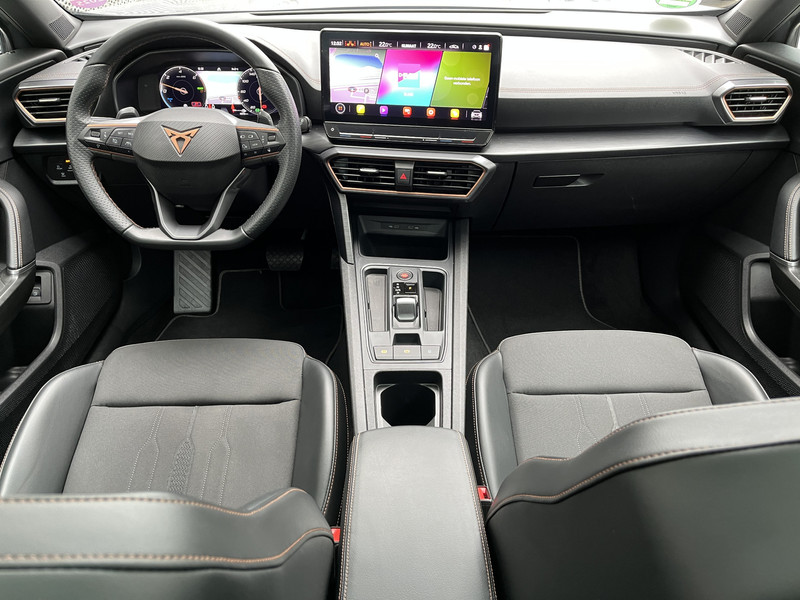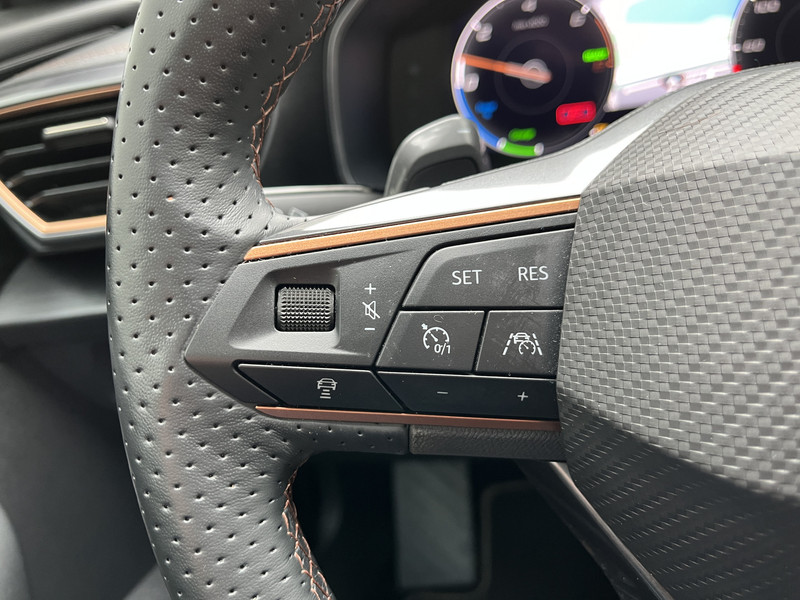 Dankzij het digitale dashboard in deze auto kan je de interface van jouw cockpit personaliseren. Zodra je naar de 'R' schakelt, gaat de achteruitrijcamera in werking en heb je een perfect zicht op alles wat zich achter de auto afspeelt. Adaptive cruise control is een comfortabele en veilige optie. Het systeem reguleert de snelheid en houdt automatisch afstand tot jouw voorligger. Kop aan kont langzaam rijden: dan is afstand houden soms lastig. De file assistent helpt en zorgt automatisch voor veilige ruimte tot de voorligger. Ook als die tot stilstand komt. De speciale app verbindt met Connected Services, die de status van vitale functies bijhoudt en waarschuwt als je bijvoorbeeld moet tanken, de bandenspanning moet controleren of olie moet bijvullen. De CUPRA is standaard voorzien van: dashboard met spraakbediening, full map navigatiesysteem, achteropkomend verkeer waarschuwing, electronic climate control, draadloos opladen en DAB ontvangst.