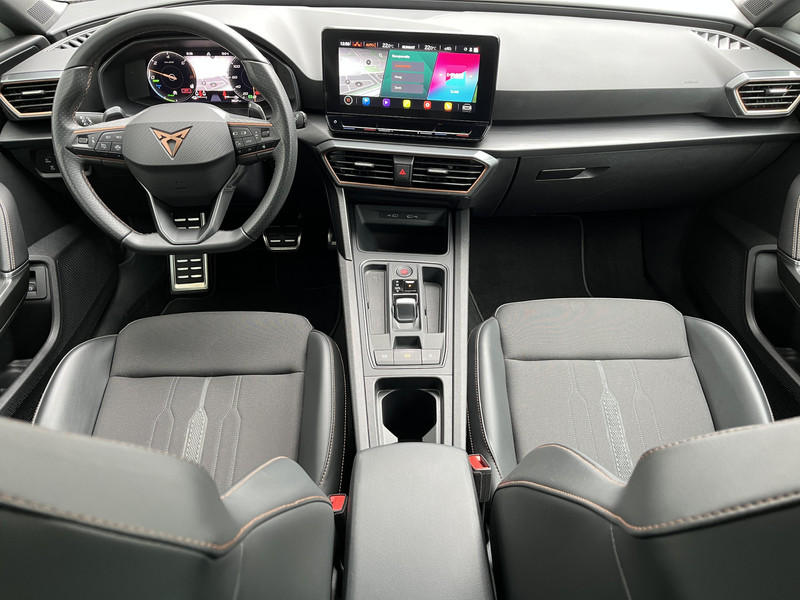 Modern design en bijzondere techniek bepalen de kwaliteiten van de hybride CUPRA Leon Sportstourer. Goed voor het milieu, goed voor de portemonnee: hybride rijden biedt het beste van beide! Bestuurder en bijrijder krijgen een warm welkom: deze CUPRA Leon Sportstourer is voorzien van verwarmbare voorstoelen. Mooi om te zien en heerlijk om in te zitten zijn de sportstoelen, die je onderweg optimale ondersteuning geven. Bij de uitrusting van deze CUPRA horen onder meer 19 inch lichtmetalen velgen, LED koplampen, adaptief dempingsysteem, donker getint glas achter, in delen neerklapbare achterbank en LED-achterlichten.