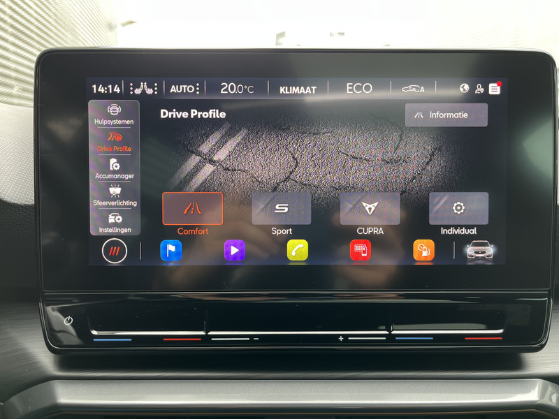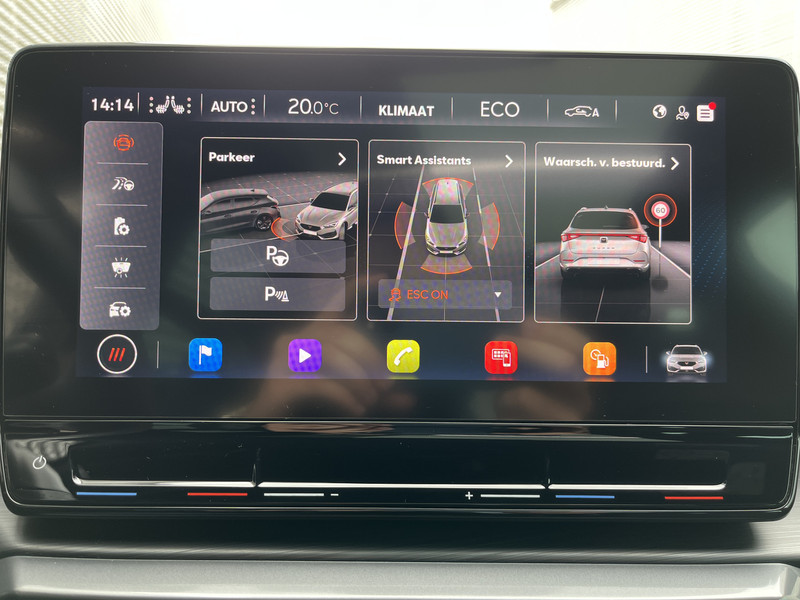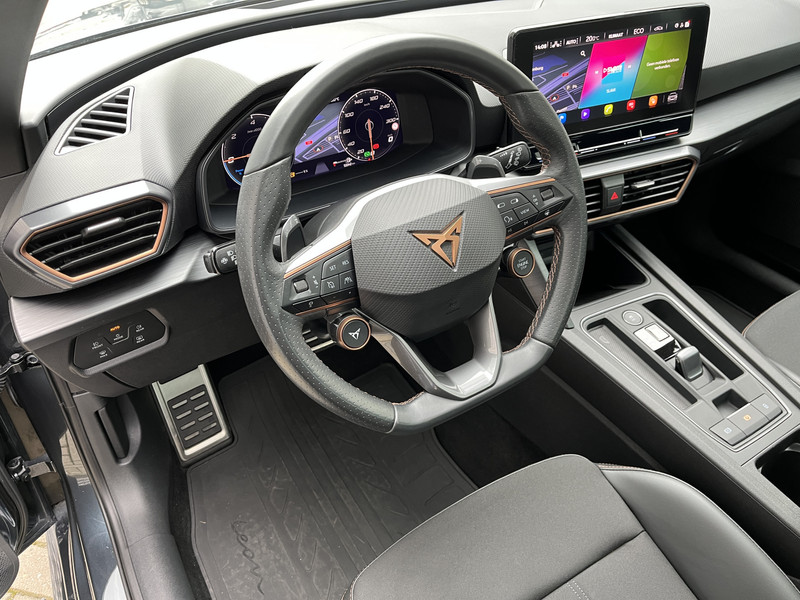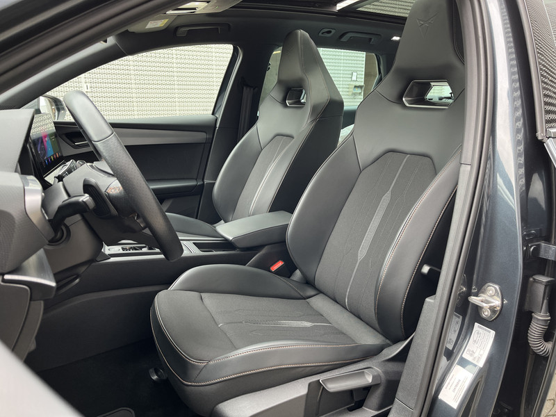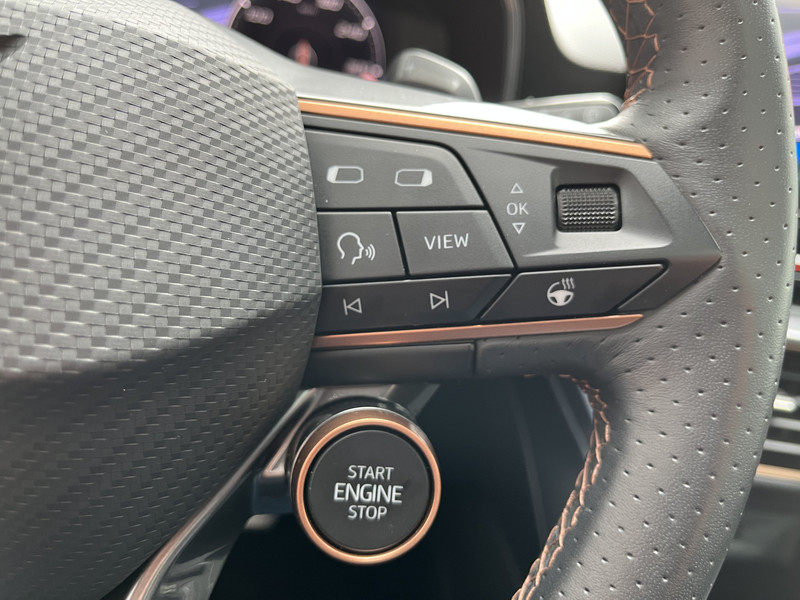 Als bestuurder van deze CUPRA ben je nooit alleen. Je wordt onderweg bijgestaan door technologische hulpmiddelen die samen met jou de weg in de gaten houden. Als het nodig is, grijpen ze zelfs in, door te remmen of bij te sturen. De actuele snelheidslimiet, een inhaalverbod en andere verkeersborden. De verkeersborddetectie ondersteunt jou tijdens elke rit. Met het Lane-keeping systeem kom je nooit per ongeluk buiten de rijstrook. Onbedoeld bumperkleven is er niet bij, dankzij de forward collision warning. Die waarschuwt direct als een botsrisico met je voorligger dreigt. De veiligheid van deze auto wordt verder verhoogd door dodehoekdetectie, hill hold functie, vermoeidheidsherkenning, autonoom remsysteem en bandenspanningcontrolesysteem.