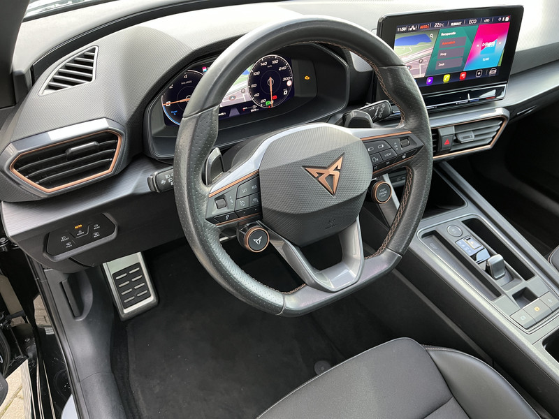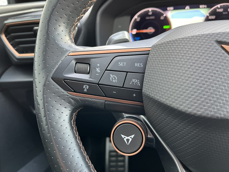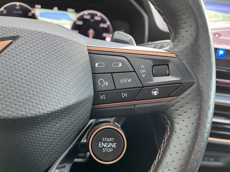 Deze CUPRA biedt je niet alleen comfort en rijplezier, maar ook veiligheid. Actieve veiligheidssystemen houden voor jou de weg in de gaten en reageren op onvoorziene situaties voordat jij dat kunt. Een belangrijke bijdrage aan de veiligheid onderweg levert de verkeersbord-detectie. Mooi binnen de lijnen van de rijstrook blijven? Het Lane-keeping systeem helpt altijd een handje. Veel aanrijdingen bestaan uit kop-staartbotsingen. De forward collision warning reduceert dat risico aanzienlijk. Dankzij veiligheidsvoorzieningen als dodehoekdetectie, hill hold functie, vermoeidheidsherkenning, autonoom remsysteem en bandenspanningcontrolesysteem, ben je steeds veilig onderweg.