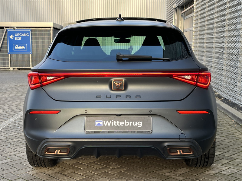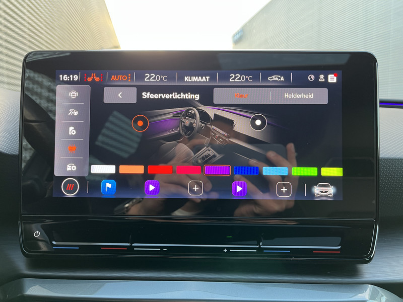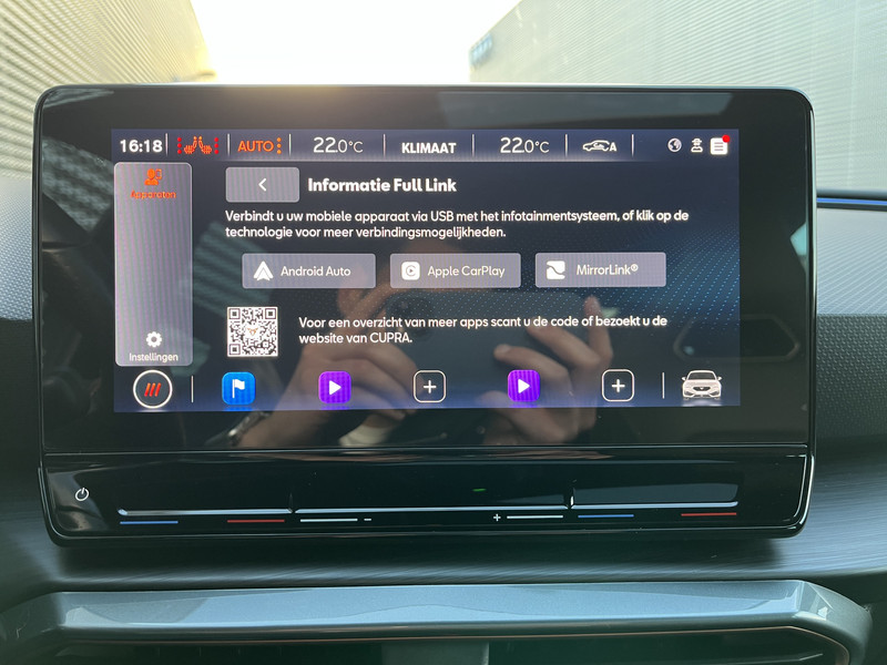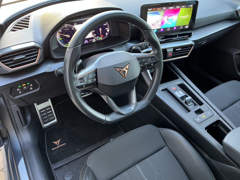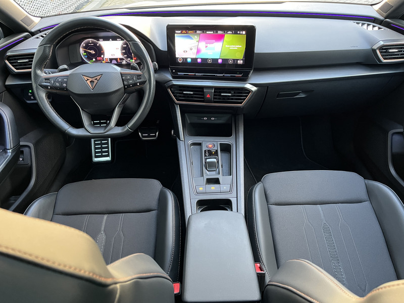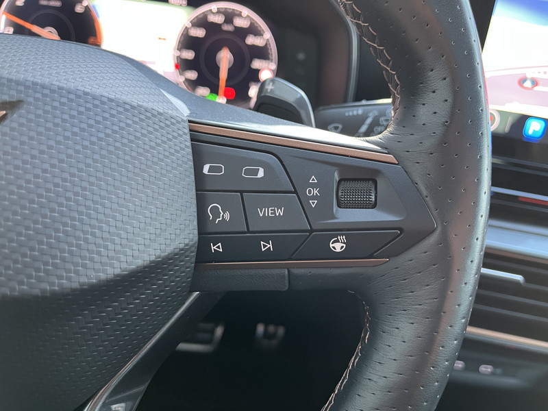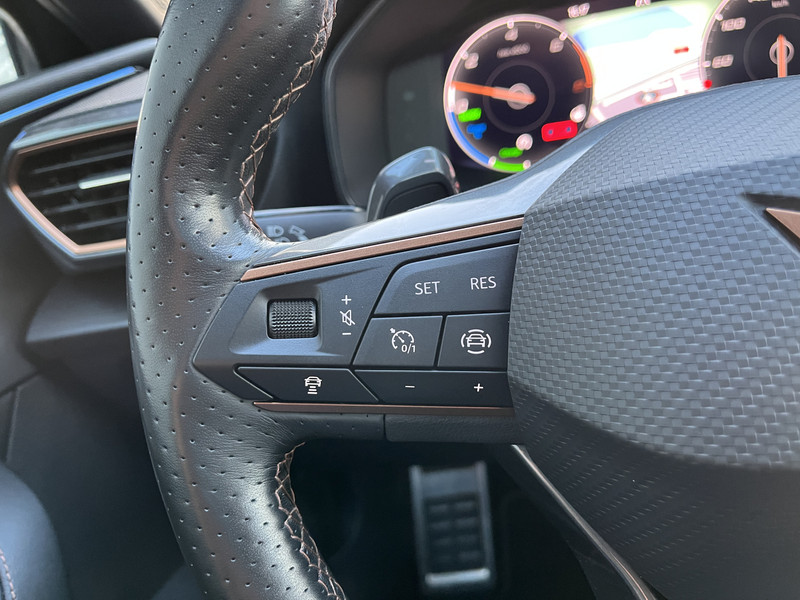 Je zult verrukt zijn van de digitale wereld van mobiliteit; het digitale dashboard projecteert alles wat jij nodig hebt om jouw rit aangenaam en veilig te maken. Geen nekkramp of spiegelwerk meer bij het achteruitrijden: de achteruitrijcamera kijkt en ziet alles! Met adaptive cruise control houdt de auto zelfstandig afstand tot jouw voorligger. Een veiligheidsverhogende optie waarmee je comfortabel onderweg bent. De file assistent verzacht het fileleed door automatisch veilig afstand te houden tot de voorligger en zo nodig zelfs te stoppen als de rij tot stilstand komt. Appen met je auto? Geen probleem. Je kunt van overal contact opnemen, de functies controleren en activeren. Je bedient 'm met remote services. Deze CUPRA is voorzien van dashboard met spraakbediening, full map navigatiesysteem, WIFI-hotspot, achteropkomend verkeer waarschuwing, electronic climate control en schakelpaddles aan het stuur.