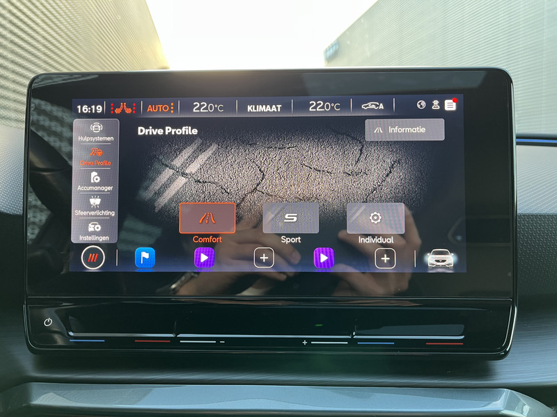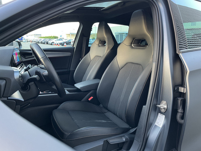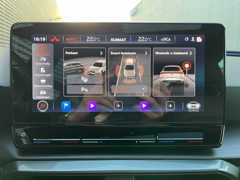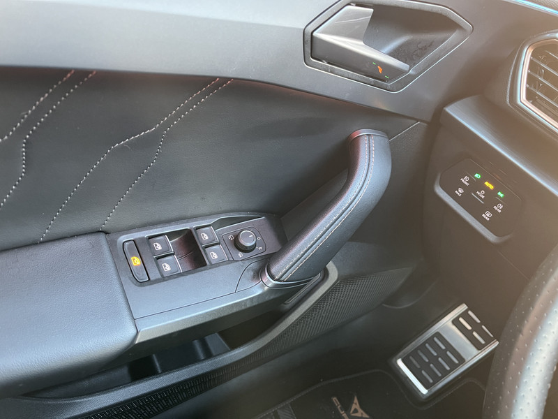 Deze auto is voorzien van innovatieve systemen die je onderweg begeleiden en beschermen. Onderweg fungeert de verkeersbord-detectie als het ware als jouw bijrijder en attendeert je op de verkeersborden langs de weg. Het Lane-keeping systeem zorgt dat je mooi binnen de lijntjes blijft. Ongemerkt buiten de rijstrook komen is er niet meer bij. Het forward collision warning-systeem is constant alert en detecteert via sensor de afstand tot voorliggers. Wordt die te klein, dan volgt een automatische waarschuwing. Bovenop deze veiligheidsfeatures heeft deze CUPRA bovendien dodehoekdetectie, hill hold functie, vermoeidheidsherkenning, autonoom remsysteem en bandenspanningcontrolesysteem.