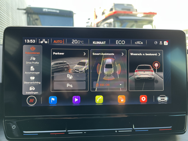 Je geniet nog meer van het rijden met jouw CUPRA omdat je wordt beschermd door intelligente veiligheidssystemen. Onderweg zorgt verkeersborddetectie ervoor dat je geen waarschuwingsbord mist. Ongemerkt buiten de rijstrook raken? Nee hoor, het Lane-keeping systeem waarschuwt en corrigeert. Botsingen met een voorligger gebeuren relatief vaak. De forward collision warning slaat tijdig alarm als dat risico ontstaat, zodat je kunt ingrijpen. De veiligheid van deze auto wordt verder verhoogd door hill hold functie, vermoeidheidsherkenning, autonoom remsysteem en bandenspanningcontrolesysteem.