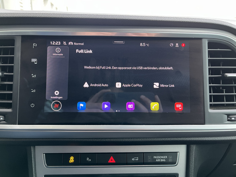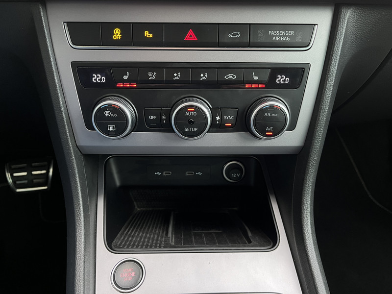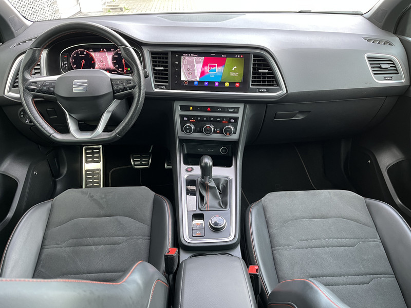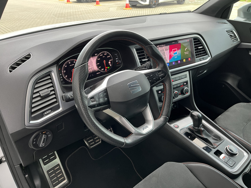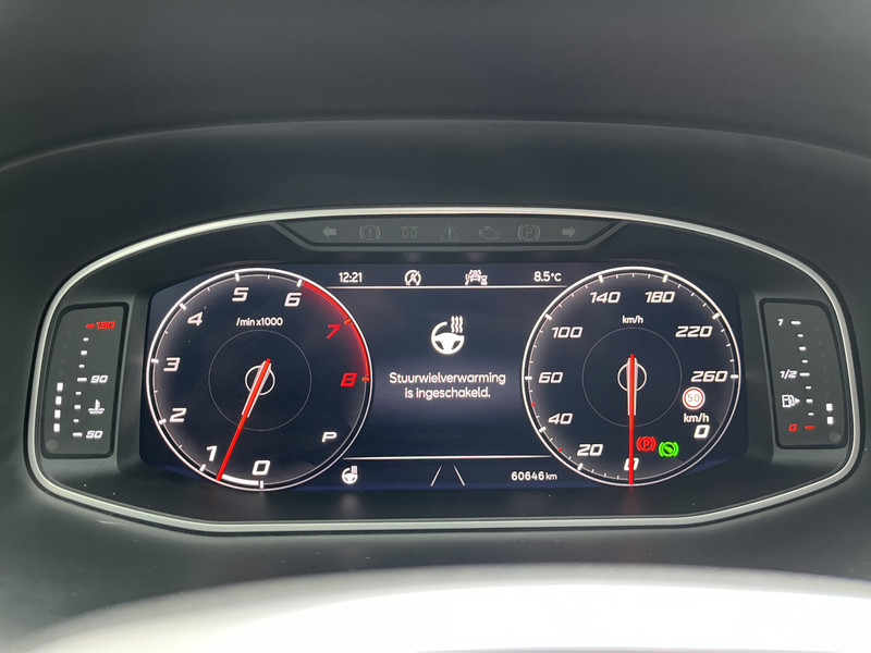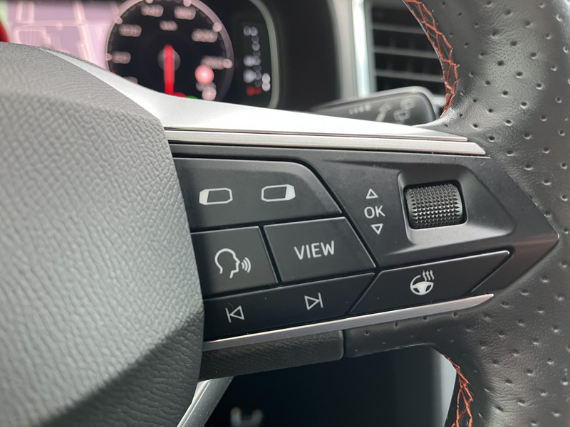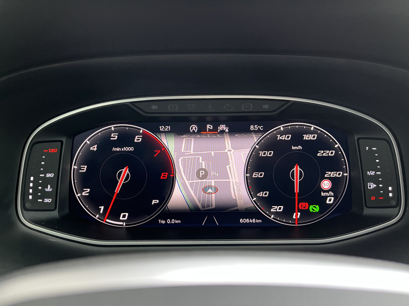 Begeef je op de geweldige rit door de digitale wereld van mobiliteit waar alles wat jij wenst voor comfort en veiligheid, wordt geprojecteerd op het digitale dashboard. De 360 graden camera op deze auto wordt verzorgd door vier geavanceerde camera's. Het biedt garantie van uitstekende beeldkwaliteit. Adaptive cruise control houdt de ingestelde snelheid vast en houdt afstand tot het voertuig voor je. Voor de veiligheid op de weg is het goed dat je je ogen op de weg kunt houden en jouw handen aan het stuur. Want het audiosysteem, met DAB-ontvangst, en het full map navigatiesysteem bedient je vanaf het stuurwiel en met spraakbediening. Door de draadloze oplaadmogelijkheid voor telefoons ben je verlost van kabels en snoertjes. Het opladen gaat simpel door de smartphone in de speciale houder te plaatsen. Met automatische airconditioning, schakelpaddles aan het stuur, regensensor, keyless entry, buitentemperatuurmeter en automatisch dimmende binnenspiegel is deze SEAT helemaal compleet.