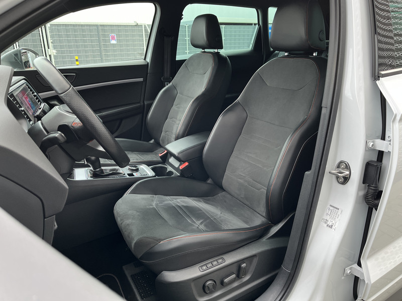 Deze goed onderhouden SEAT Ateca heeft nog maar weinig op de teller staan. Een jonkie voor een oude prijs! In deze auto vind je een benzinemotor en een automatische transmissie. De hoogwaardige, lederen bekleding benadrukt de kwaliteit van deze SEAT. Je past de stoelen moeiteloos aan, ze zijn elektrisch in te stellen en hebben bovendien een geheugen. De elektrische achterklep opent met een druk op de knop, zodat jij gemakkelijk toegang heeft tot de bagageruimte. Tot de uitrusting behoren ook 19 inch lichtmetalen velgen, Full LED koplampen, donker getint glas achter, in delen neerklapbare achterbank, LED-achterlichten en verstelbare lendensteunen.