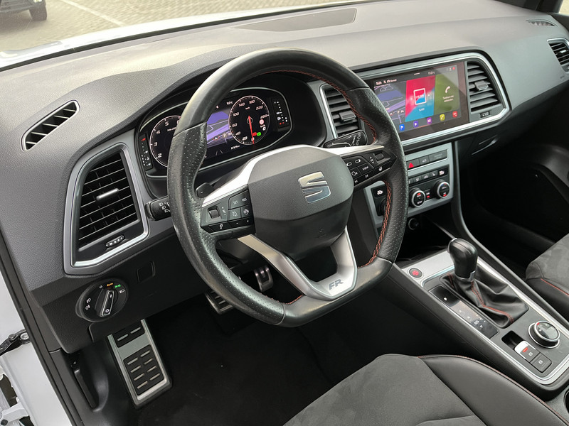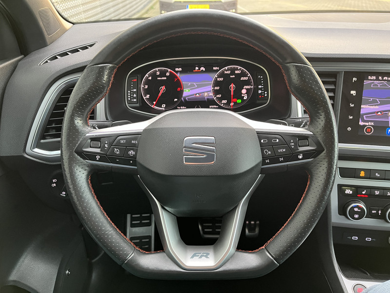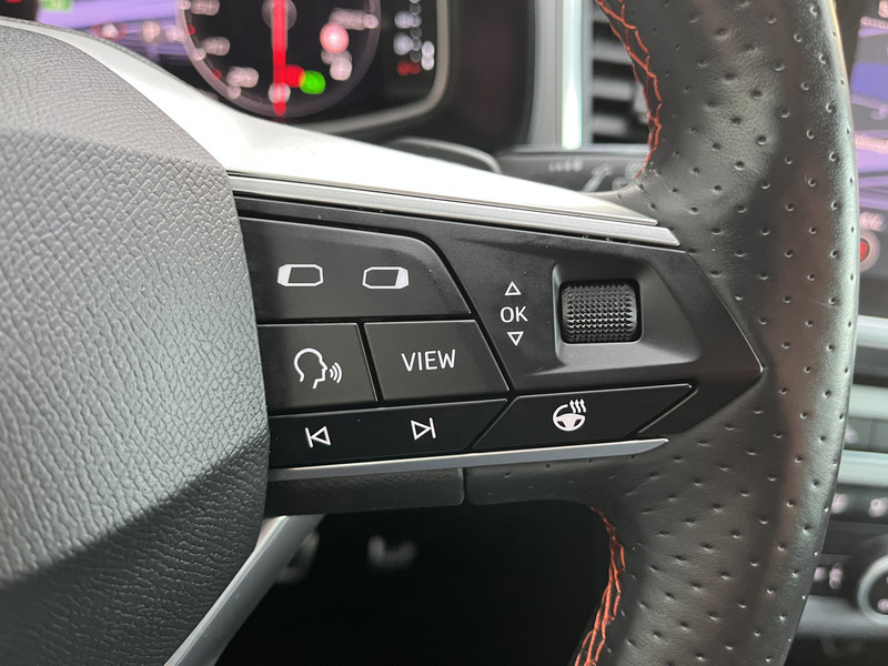 Met het digitale dashboard in deze auto kun je de interface van jouw cockpit personaliseren. Met de hulp van vier camera's, biedt de 360 graden camera op deze auto een panoramisch zicht, wat bijzonder nuttig is bij het parkeren en manoeuvreren. Met adaptive cruise control houdt de auto zelfstandig afstand tot jouw voorligger. Een veiligheidsverhogende optie waarmee je comfortabel onderweg bent. Naast handmatige bediening kun je belangrijke functies met je stem bedienen dankzij de ingebouwde spraakbediening. Rijplezier en luisterplezier gaan hand in hand dankzij het high performance audiosysteem. Met full map navigatiesysteem, automatische airconditioning, schakelpaddles aan het stuur, draadloos opladen, DAB ontvangst en regensensor is deze SEAT helemaal compleet.