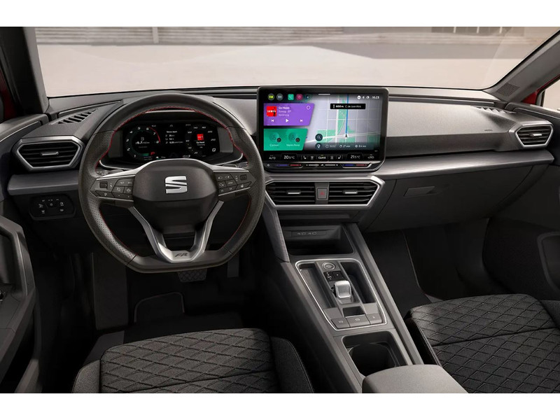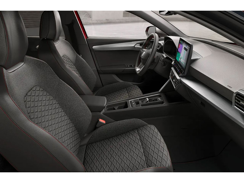 De SEAT Leon Sportstourer FR Business PHEV geeft elektrisch rijden een sportieve twist. Met zijn FR-design, sportstoelen met rode stiksels en Cosmo Grey accenten onderscheidt hij zich direct.