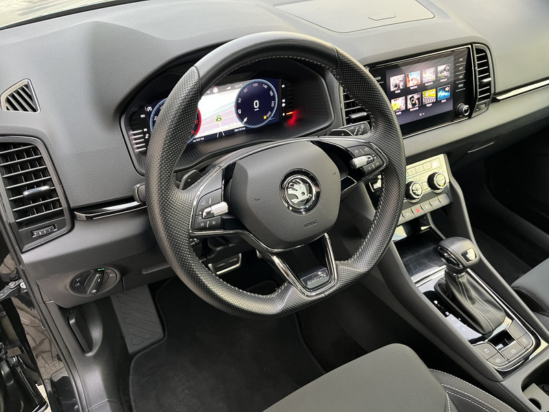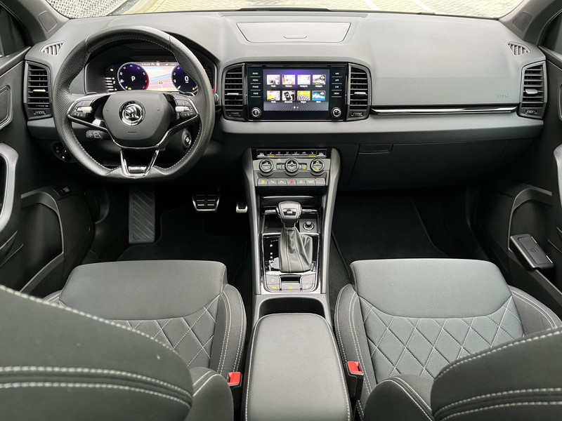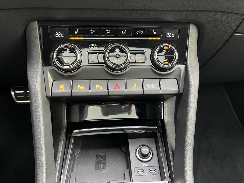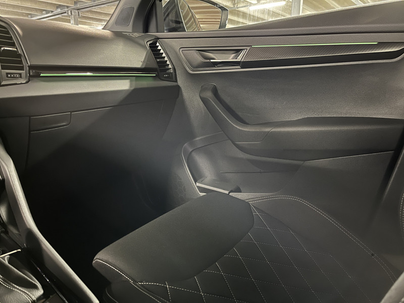 Ontspannen en zorgeloos autorijden, dat doe je met deze ŠKODA Karoq. Deze auto komt uit het bouwjaar 2022. De aandrijving van deze ŠKODA wordt verzorgd door een viercilinder benzinemotor en een automatische transmissie. Koude start? Niet met de verwarmbare voorstoelen! Natuurlijk zijn de sportstoelen super functioneel als het rechterpedaal ingetrapt wordt. Maar ook voor het uiterlijk doen ze veel! Licht en lucht komen onbelemmerd binnen als het elektrisch bediende glazen panoramadak met één druk op de knop wordt geopend. De elektrische achterklep opent met een druk op de knop, zodat jij gemakkelijk toegang heeft tot de bagageruimte. Ook achterin is iedereen snel op temperatuur door de verwarmde achterbank. De koplampen met matrix LED-verlichting zijn het hoogst haalbare op het gebied van autoverlichting. Je wordt in deze auto ook getrakteerd op 19 inch lichtmetalen velgen, donker getint glas achter, in delen neerklapbare achterbank, LED-achterlichten en verstelbare lendensteunen.