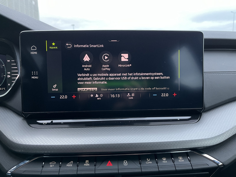 Het digitale dashboard ondersteunt je voortdurend met actuele, bruikbare informatie. Naast handmatige bediening kun je belangrijke functies met je stem bedienen dankzij de ingebouwde spraakbediening. Even niks om achter de auto te hangen? Dan is de elektrisch inklapbare trekhaak superhandig. Navigatie, onderhoudsstatus, vergrendeling, audio... de mogelijkheden van remote services zijn haast oneindig. Ook deze auto laat zich bedienen en analyseren via je smartphone! Zorgeloos en geconcentreerd rijden? Het full map navigatiesysteem wijst de weg! Met WIFI-hotspot, automatische airconditioning, schakelpaddles aan het stuur, draadloos opladen, DAB ontvangst en parkeersensoren voor en achter is deze ŠKODA helemaal compleet.