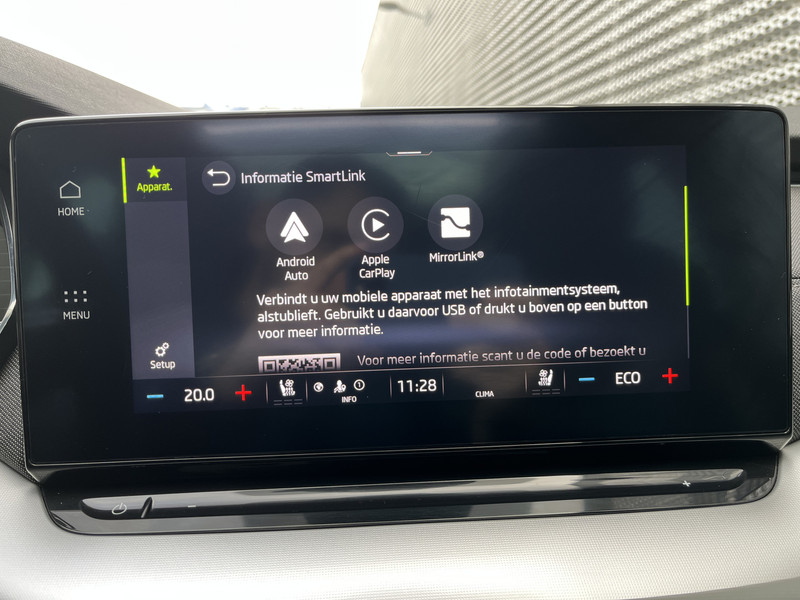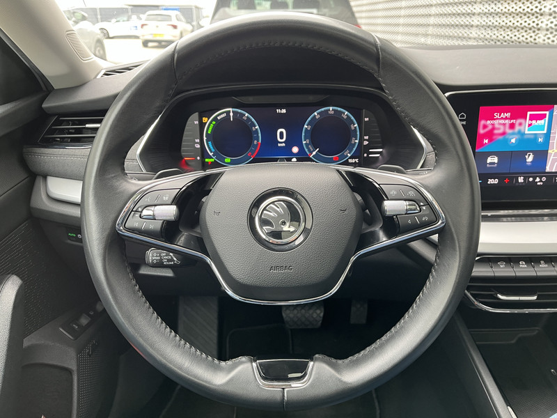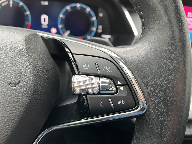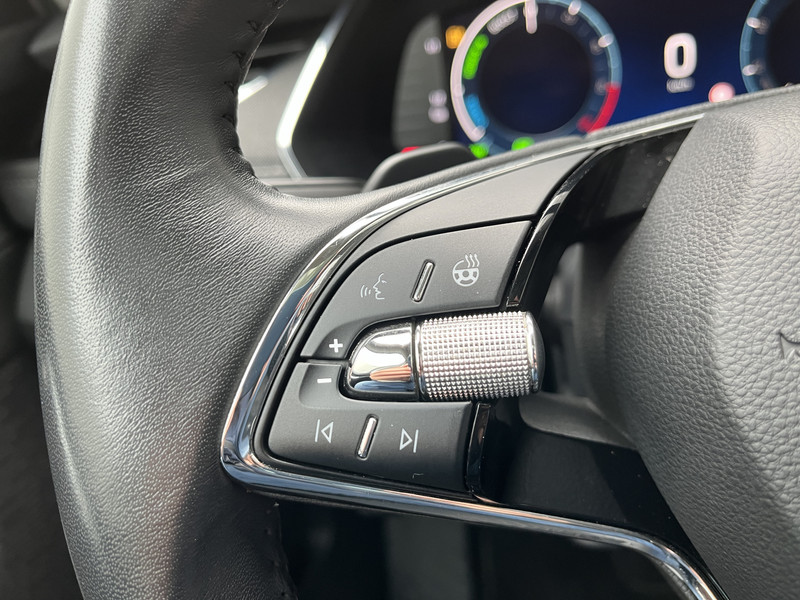 Het digitale dashboard vertelt je alles wat je wilt weten voor een slimme, comfortabele en veilige rit. Bij het inparkeren laat de achteruitrijcamera precies zien hoeveel meter... decimeter... centimeter ruimte er nog is! Adaptive cruise control houdt de ingestelde snelheid vast en houdt automatisch afstand tot jouw voorligger. Deze auto gaat met je in gesprek. Hij vertelt met behulp van remote services alles over de status van diverse onderdelen en laat zich desgevraagd ook activeren. Gewoon via je smartphone. Deze ŠKODA is voorzien van spraakbediening voor het full map navigatiesysteem en voor het audiosysteem met DAB-ontvangst. Maar je kunt ook de knoppen op het stuur gebruiken. Ook WIFI-hotspot, automatische airconditioning, schakelpaddles aan het stuur, draadloos opladen, regensensor en keyless entry zijn aan boord.