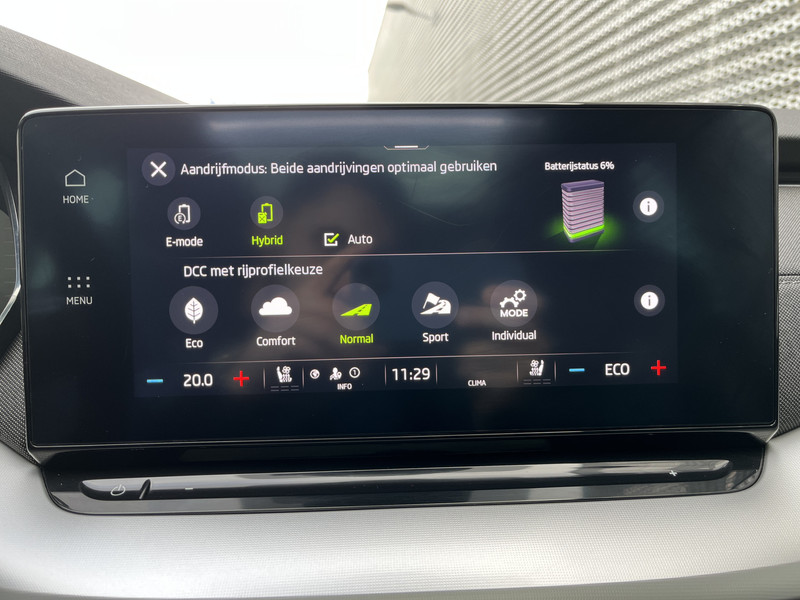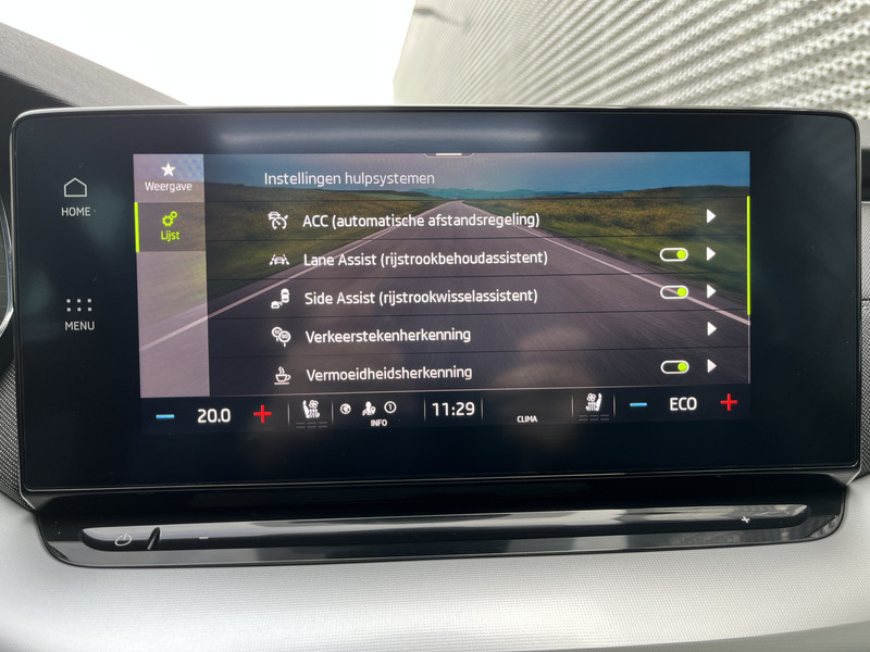 Deze ŠKODA is voorzien van verschillende intelligente veiligheidsvoorzieningen. Ze kijken tijdens het rijden als het ware met je mee, ze signaleren potentieel gevaarlijke situaties en in een aantal gevallen kunnen ze ook ingrijpen. De auto is voorzien van head-up display, waarbij alle belangrijke informatie wordt geprojecteerd in je gezichtsveld. Je hoeft je ogen geen seconde van de weg te halen! Het Lane-keeping systeem garandeert dat je je niet onverhoeds buiten de lijnen van de rijstrook begeeft. Bij afslaan en inhalen waarschuwt de actieve dodehoekdetectie meteen als er gevaar is vanwege voertuigen buiten je zichtveld. De auto is ook uitgerust met forward collision warning system, hill hold functie, autonoom remsysteem en bandenspanningcontrolesysteem.