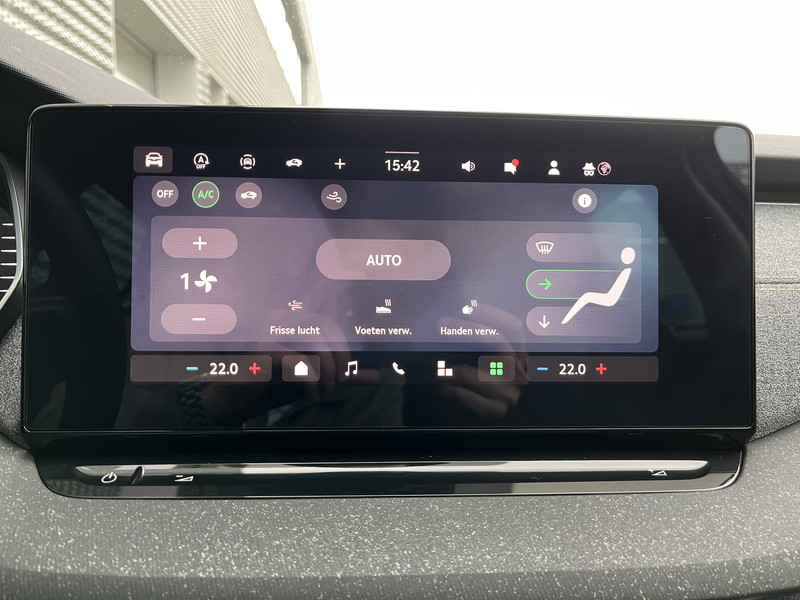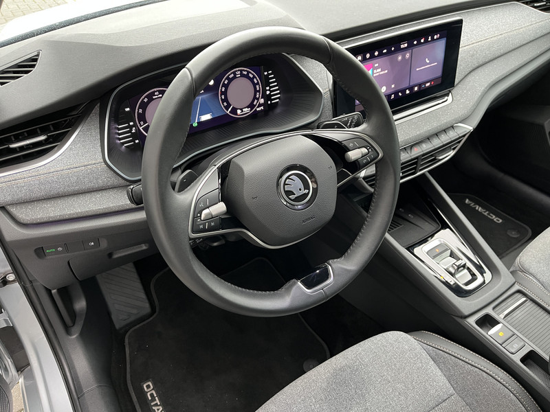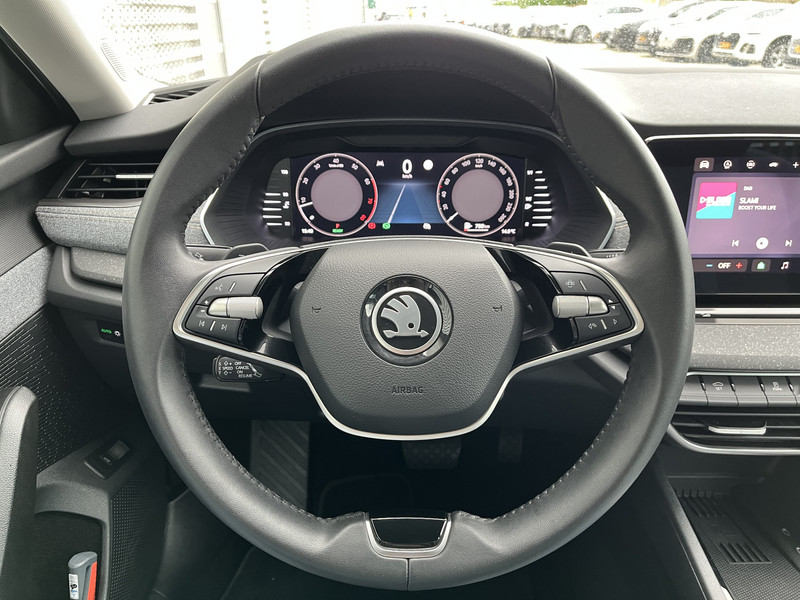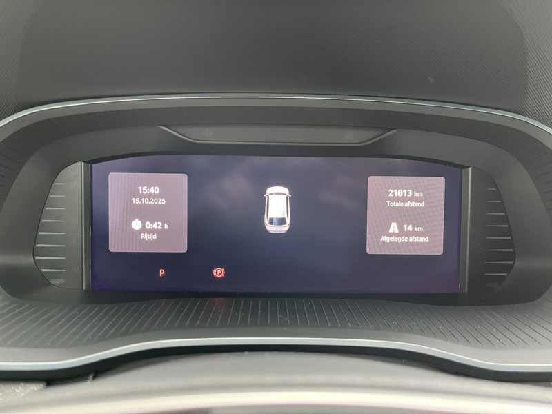 Een gevisualiseerd overzicht van alle belangrijke functies wordt geleverd door het digitale dashboard. Ook achter de auto geen verrassingen bij het inparkeren. Daarvoor zorgt de achteruitrijcamera. Met adaptive cruise control houdt de auto zelfstandig afstand tot jouw voorligger. Een veiligheidsverhogende optie waarmee je comfortabel onderweg bent. Zoals je van zo'n jonge auto mag verwachten, zijn hier ook de geavanceerde remote services aanwezig. Simpelweg met een app op uw smartphone controleer je op afstand de status van de auto en bedien je diverse functies. Op een drukke weg heb je soms ogen in je achterhoofd nodig. De sensoren aan de achterzijde nemen die functie over en geven een achteropkomend verkeer waarschuwing als een achterligger te dicht op je zit. De uitrusting van deze ŠKODA is met electronic climate control, schakelpaddles aan het stuur, draadloos opladen, DAB ontvangst, regensensor en keyless entry behoorlijk compleet.