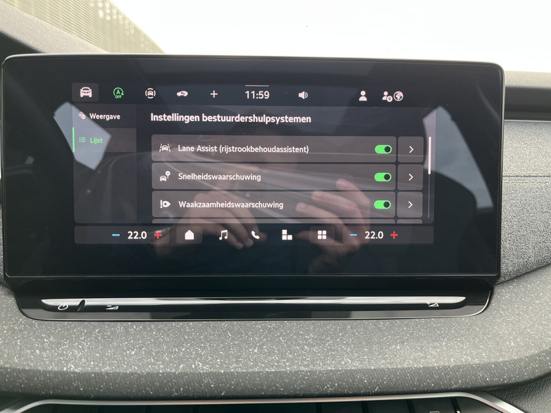 Deze ŠKODA biedt je niet alleen comfort en rijplezier, maar ook veiligheid. Actieve veiligheidssystemen houden voor jou de weg in de gaten en reageren op onvoorziene situaties voordat jij dat kunt. Een belangrijke bijdrage aan de veiligheid onderweg levert de verkeersbord-detectie in deze ŠKODA. Voorzien van het Lane-keeping systeem. Ofwel: blijf automatisch in je baan. Vermoeidsheidsherkenning herkent tekenen van vermoeidheid bij de bestuurder. Het systeem voorkomt dat er ongelukken gebeuren doordat de bestuurder in slaap valt. De auto is ook uitgerust met hill hold functie, autonoom remsysteem en bandenspanningcontrolesysteem.