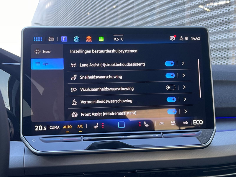 De Volkswagen Golf is jouw trouwe partner onderweg, want hij houdt continu voor jou de situatie op en om de weg in de gaten. Volautomatische veiligheidssystemen kunnen daarbij ingrijpen om je voor gevaarlijke situaties te behoeden. Dat de auto steeds meer taken van de bestuurder overneemt, merk je bijvoorbeeld aan het systeem voor verkeersbord-detectie in deze auto. Met het Lane-keeping systeem kom je nooit per ongeluk buiten de rijstrook. Vermoeidsheidsherkenning herkent tekenen van vermoeidheid bij de bestuurder. Het systeem voorkomt dat er ongelukken gebeuren doordat de bestuurder in slaap valt. De auto is ook uitgerust met dodehoekdetectie, hill hold functie, autonoom remsysteem en bandenspanningcontrolesysteem.