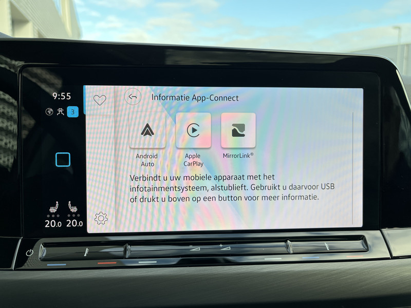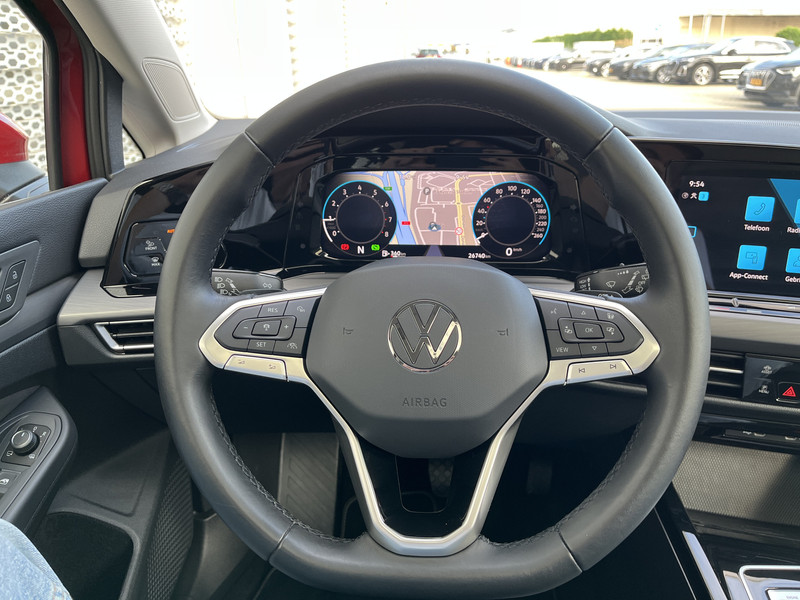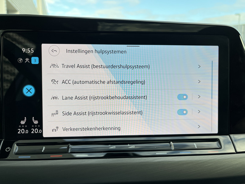 De Volkswagen Golf is ook voorzien van ADAS. Deze Advanced Driver Assistence Systems fungeren als extra ogen en oren: ze houden voor jou de weg in de gaten en grijpen in wanneer dat nodig is. Snelheid, brandstof, navigatie... de head-up display laat het allemaal zien, recht in het zichtveld van de weg. Je rijdt ook veiliger omdat deze auto voor jou de verkeersborden langs de weg kan lezen. De belangrijkste borden worden op jouw instrumentarium geprojecteerd, zodat je ze niet kunt missen. Onbedoeld buiten de rijstrook raken wordt voorkomen door het Lane-keeping systeem. De auto is ook uitgerust met forward collision warning system, hill hold functie, vermoeidheidsherkenning, autonoom remsysteem en bandenspanningcontrolesysteem.
