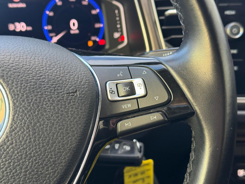 Het eigentijdse interieur wordt natuurlijk helemaal volmaakt met het digitale dashboard. Als je de adaptive cruise control inschakelt, regelt de auto zelf de snelheid en de afstand tot de auto voor je. In deze T-Roc vind jij schakelaars op het stuur om het full map navigatiesysteem te bedienen en het audiosysteem met DAB-ontvangst. Het spreekt voor zich dat een auto als deze ook van automatische airconditioning is voorzien. Superstrak parkeren wordt een eitje dankzij de parkeersensoren. Met WIFI-hotspot, regensensor, automatisch dimmende binnenspiegel, lederen stuur, centrale deurvergrendeling met afstandsbediening en boordcomputer is deze auto helemaal compleet.
